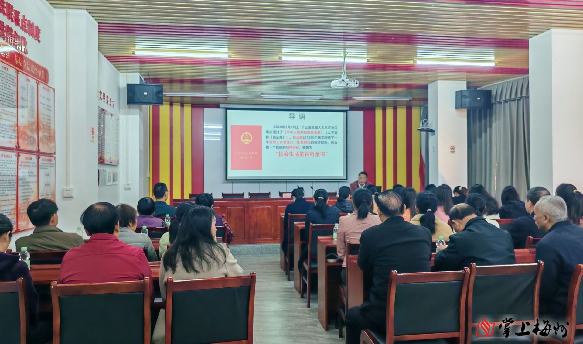 掌上梅州讯 12月3日,由平远县委政法委、县法学会主办的“民法典宣讲乡村行”活动在大柘镇城西城南社区居委会举办。平远县委宣讲团成员李忠明应邀作专题宣讲,社区干部群众约40人聆听了宣讲会。