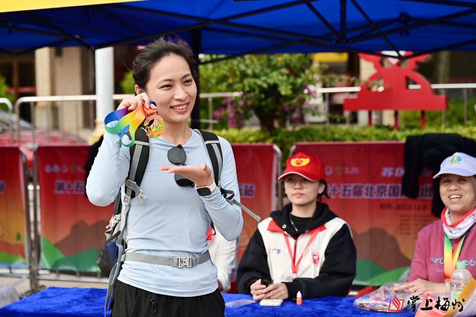 徒步爱好者走完全程,领取纪念徽章打卡留念。