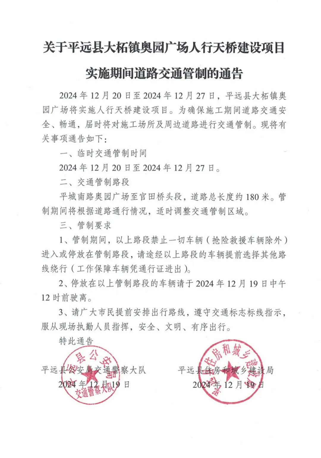 平远县大柘镇奥园广场将实施人行天桥建设项目,注意绕行!