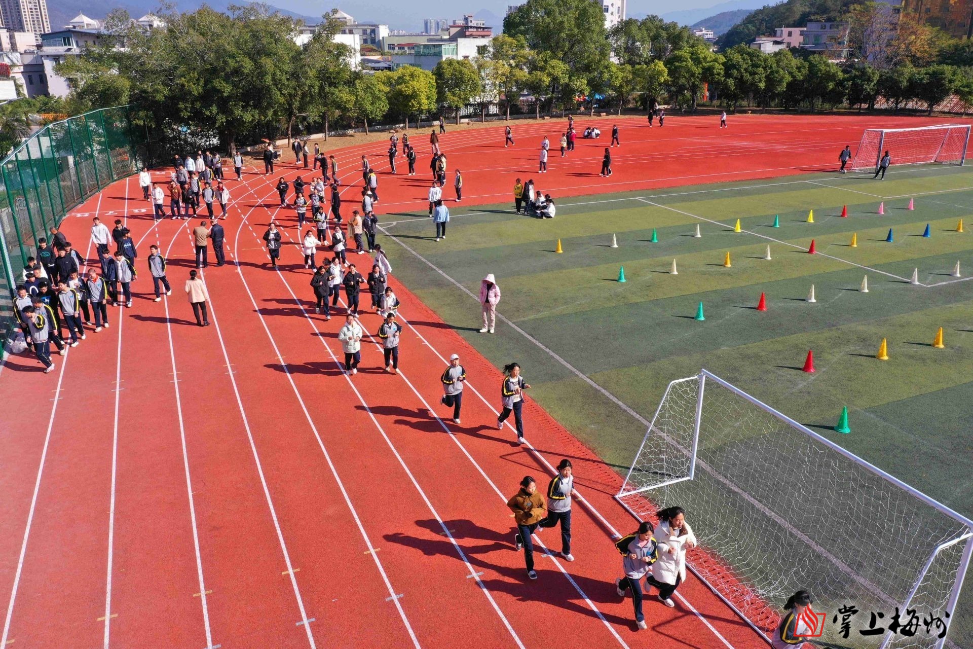 城南中学的学生在改造后的新操场跑操。