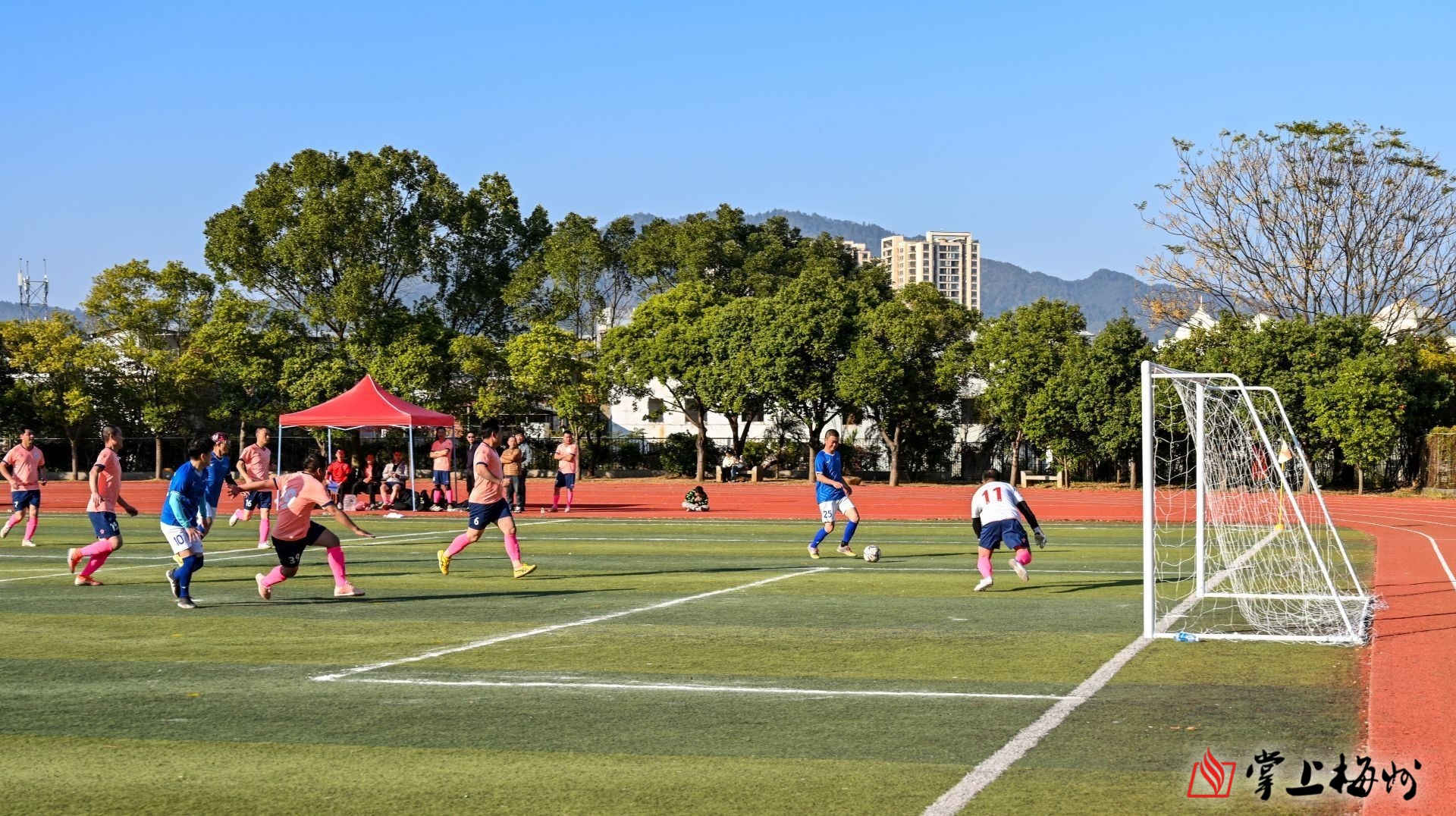 首轮赛事拉开战幕,梅青中学队与恒龙足球俱乐部队率先登场。(平远县文广旅体局供图)