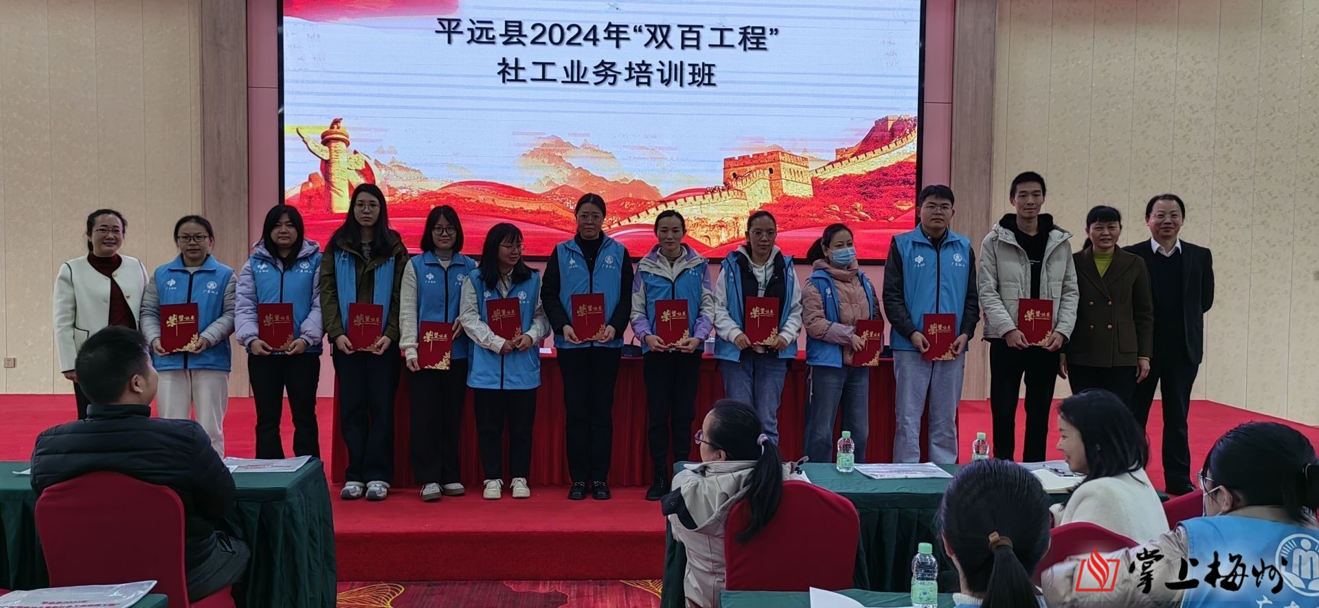 12月25日,平远县民政和退役军人事务局举办2024年“双百工程”社工业务培训班,全县“双百社工”和各镇公共服务办公室主任共175人参加了此次培训。平远县民政和退役军人事务局局长刘秀玲同志做开班动员讲话,并与平远县民政和退役军人事务局党组成员、副局长姚卫华同志为获得2023年度优秀社工站副站长、优秀社工、优秀社工站联络员的社工颁奖。