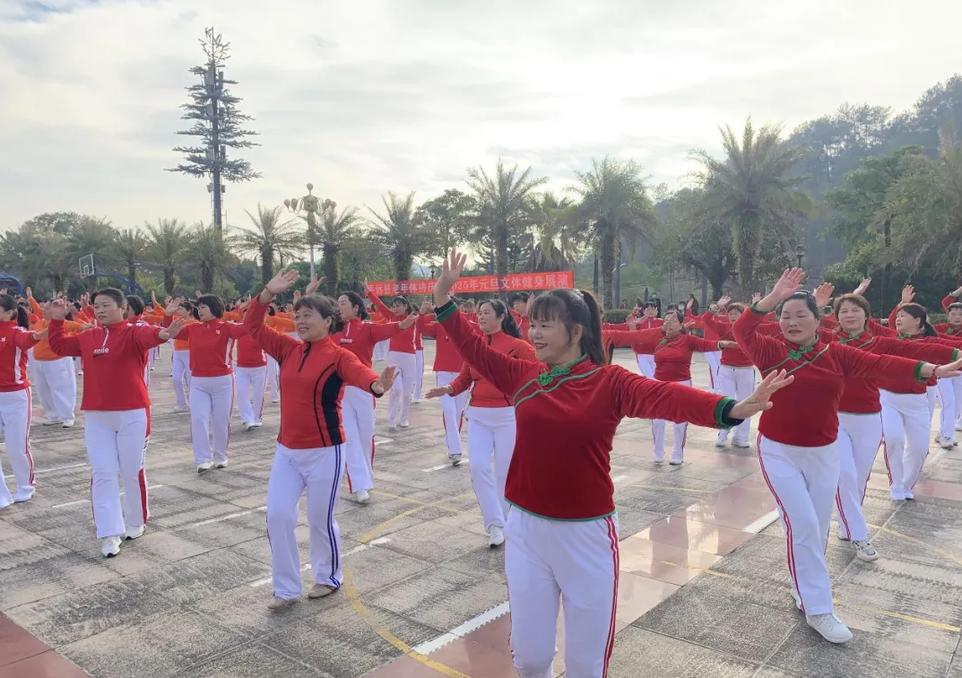 在2025年即将来临之际,近日,平远县老年人体育协会在平城花园南门广场举办庆祝2025年元旦文体节目展演活动。县老年体协下属各健身活动点以及来自大柘镇、东石镇、泗水镇、热柘镇老年体协共200多名老年朋友欢聚一堂,共同联欢,庆祝2025年元旦节日。