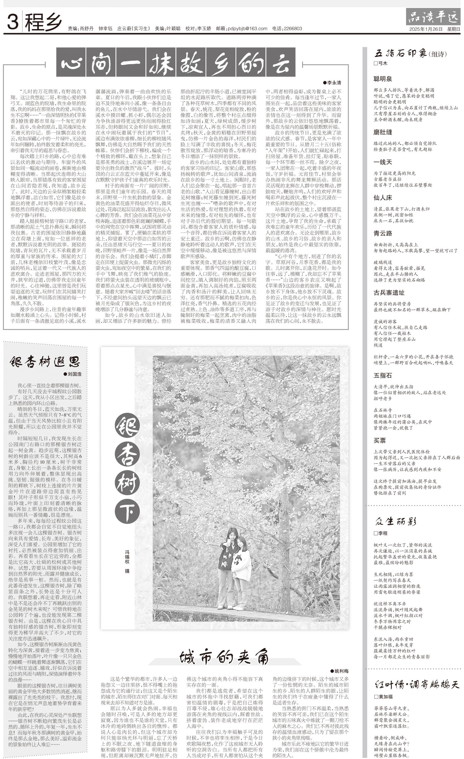 由此,在我的心灵深处产生联想——银杏树不断趋向繁茂生长是必然的、循环上升的,年复一年,生生不息!而每年秋冬那满树的黄金甲,始终是那么金艳,那么美好,溢彩流金的景象始终让人难忘……