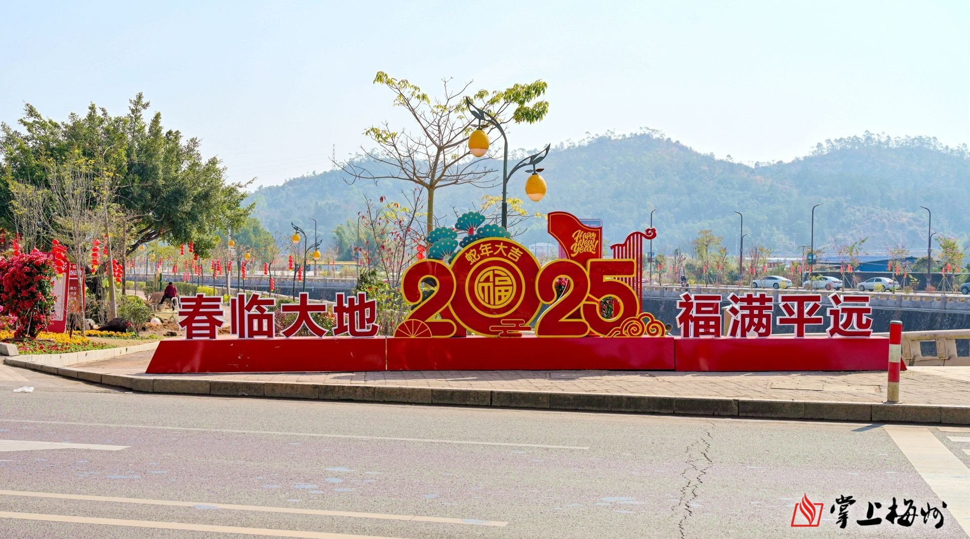 平远街头的新春装饰营造了浓厚的节庆氛围。