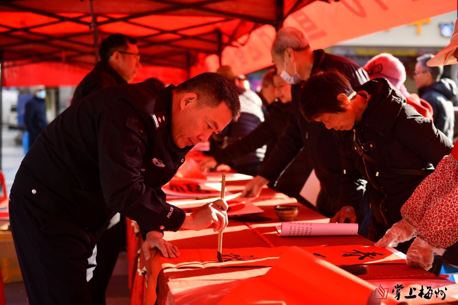 公安民警为群众挥毫送春联。(平远公安供图)
