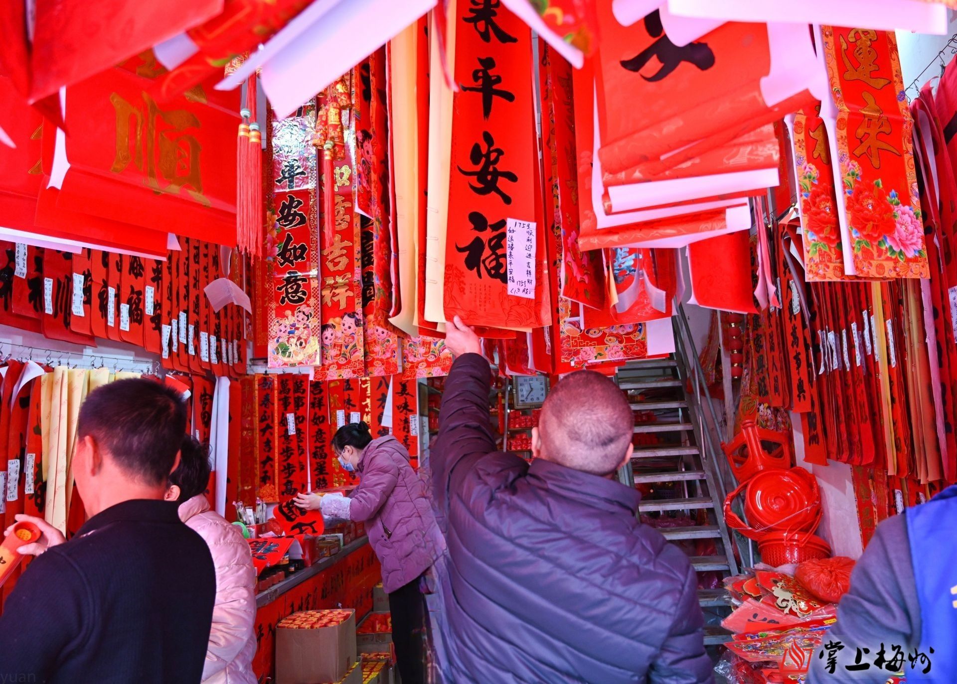 售卖春联的摊位红彤彤一片,将年味烘托得愈发浓郁,将春节氛围感“拉满”。“福星高照平安宅 好景常临康乐家”一副副春联苍劲有力的字迹里饱含着对新一年的美好向往。除了春联,各式各样的福字富有创意,有的福字融入了剪纸元素,花鸟鱼虫栩栩如生;有的福字则印着俏皮的蛇图案。