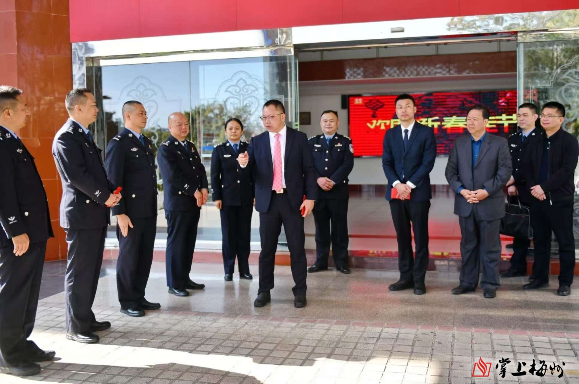 在平远县公安局,周小勇、喻勇认真听取了警力部署、值班备勤以及社会治安防控体系运行的详细汇报。周小勇、喻勇对公安干警长期以来的辛勤付出给予了高度肯定,他们表示,春节是万家欢聚的时刻,公安干警舍小家为大家,坚守在维护社会稳定的第一线,责任重大,使命光荣。希望大家继续发扬“特别能吃苦、特别能战斗、特别能奉献”的优良传统,充分发挥科技力量,严格落实安保措施,切实筑牢全县平安防线。