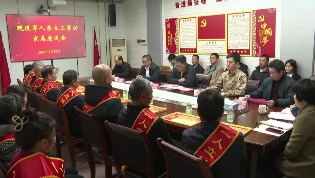 2月12日,平远县召开现役军人荣立三等功家属座谈会,为8名立功受奖的现役军人家属送上喜报。副县长蓝常基参加活动。