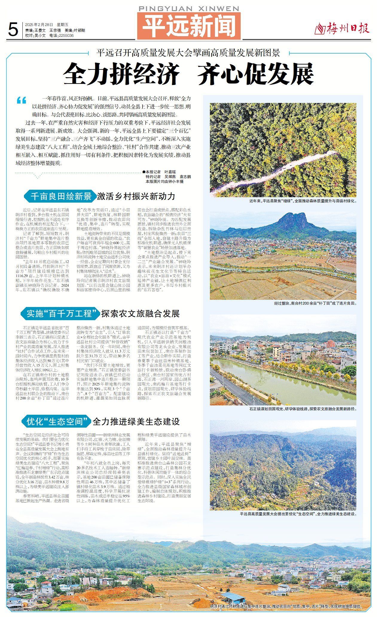 平远县高质量发展大会提出要优化“生态空间”,全力推进绿美生态建设。