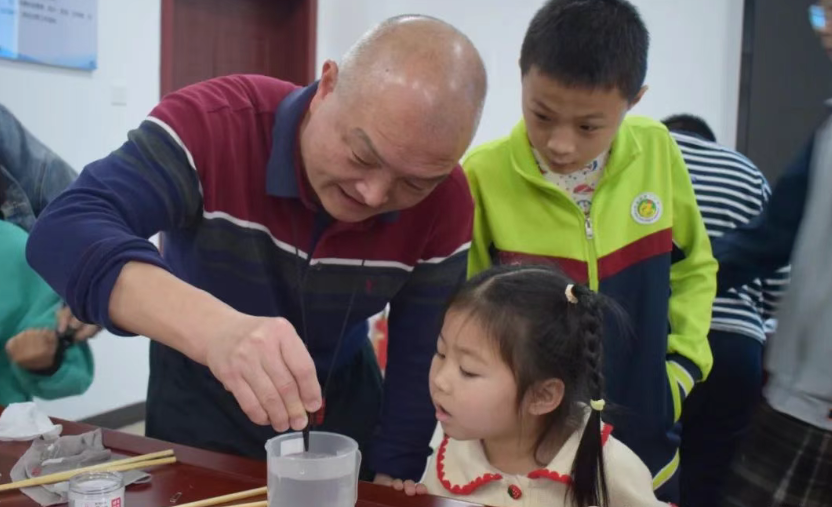 活动伊始,徐振兴老师化身“科学魔法师”,用一根绣花针、一杯清水和几件生活小工具,带领孩子们走进表面张力的奇妙世界。“纸巾铺底、筷子轻放,水的‘皮肤’能托起针尖!”徐老师一边演示,一边用趣味比喻讲解原理。当滴入洗洁精后,水面“魔力”瞬间消失,针尖悄然下沉,孩子们瞪大双眼,惊叹声此起彼伏。实验环节中,“小科学家”们轮番上阵。有人屏息凝神,用镊子将针轻放水面;有人另辟蹊径,用回形针搭出“浮桥”。每当针尖稳稳“躺”在水面,现场便爆发出热烈掌声。现场一位小参与者兴奋地说:“我试了三次才成功,原来科学就像解谜一样有趣!”