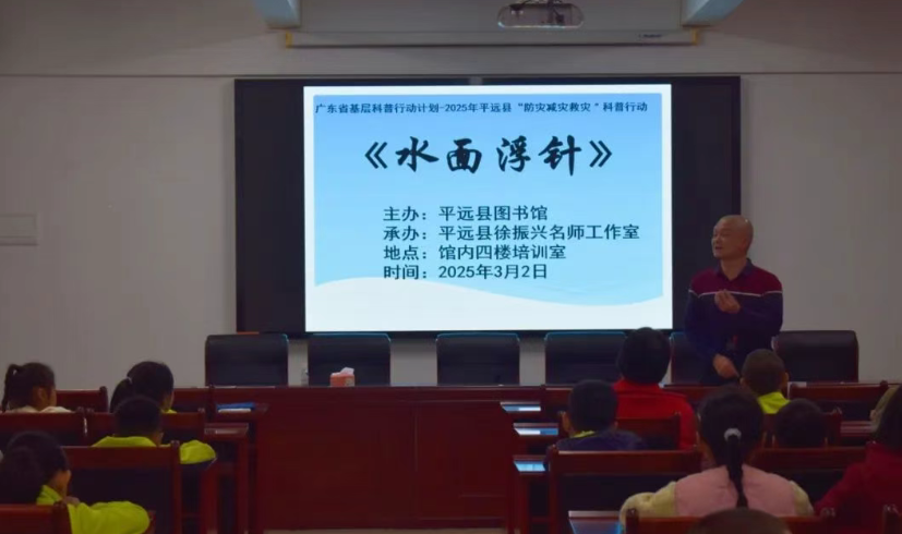 当绣花针轻盈漂浮于水面,科学的神奇与安全的智慧在这里碰撞!3月2日上午,由平远县科协指导、平远县图书馆主办、徐振兴名师工作室承办的2025年青少年科技创新实践活动——《水面浮针》在县图书馆四楼培训厅火热开展。50余名5至14岁的“小科学家”与家长齐聚一堂,在动手实践中探索科学奥秘,学习安全自护技能,上演了一场“脑力与细心”的双重挑战。