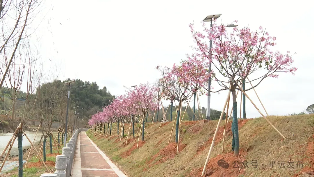 近期以来,平远县差干镇差干河河堤的樱花浪漫“上线”,丹山碧水与“樱花粉”优雅同框,勾勒出一幅美丽的春日画卷。