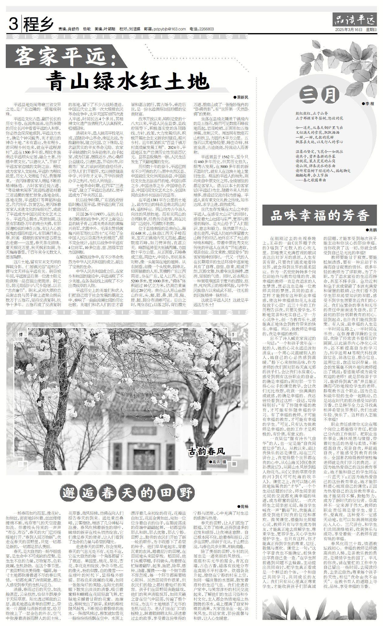 走进春天的田野,你会发现,春天的气息无处不有、无处不在,它在大自然的每一个角落都留下了痕迹。果园里,桃花、梨花、杏花、李花竞相绽放、争奇斗艳,红的像火,粉的似霞,白的像雪……在绿叶的衬托下,显得格外娇媚。那些色彩斑斓的花瓣,如同一张张绚烂的笑脸,在阳光的照耀下散发出淡淡的清香,吸引着蜜蜂和蝴蝶在花间轻盈飞舞,忙碌地采撷着甘甜的花蜜。池塘边,柳树发出了新芽,柔软的柳枝随风摇曳,不断搅动着碧绿的池水,一阵微风拂过,柳絮就如雪花一般纷纷扬扬飘在空中。水面上漂浮着几朵初绽的荷花,花瓣洁白如玉,花蕊金黄如丝,宛如一位位身着白衣的仙子,在碧波荡漾的荷塘中翩翩起舞,一切都显得那么和谐,那么优雅,那么宁静。田野上,勤劳的农民们开始了新一轮的耕作,为丰收播下了希望的种子。他们早早地起床,背着沉重的农具,踏着泥泞的田埂,在田间地头来回穿梭。稻田间,他们头戴草帽,手持锄头,弯着腰在忙碌着翻犁、起垄、施肥、除草、播种、浇灌、覆膜……每一个细节都不容忽视,每一个环节都需要精心照料。虽然田间劳作很累,但农民们的脸上都挂着灿烂的笑容。孩子们在田野间奔跑嬉戏,他们的笑声清脆悦耳,如同天籁之音在空气中回荡,传遍了整个村庄,为这片土地增添了无尽的生机与活力。老人们坐在门口的摇椅上,眯着眼睛晒太阳,讲述着过去的故事,享受着这份难得的宁静与团聚,心中充满了对生活的感激与热爱。