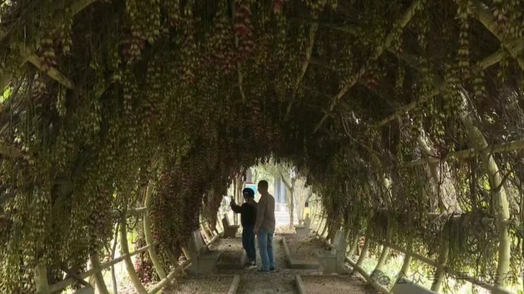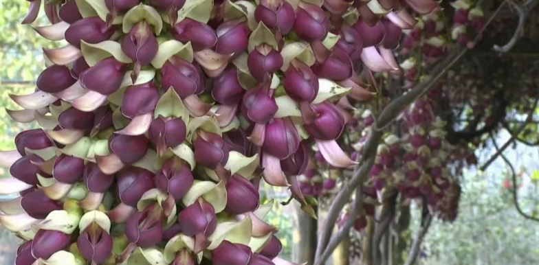 禾雀花是常春油麻藤所开的花,花期长,外形漂亮,又因所开之花神似禾雀,故被称作“禾雀花”。在长田镇曼佗山庄的禾雀花观赏长廊,只见盛开的禾雀花缠绕着树干,攀援而上,吊挂成串,每串二三十朵花,垂直落下,远远望去,宛如一条条“瀑布”倾泻而下,又酷似万鸟栖枝,灵动有趣,传神无比,置身其中,让人如痴如醉。