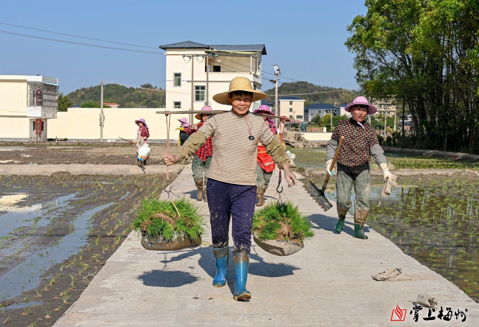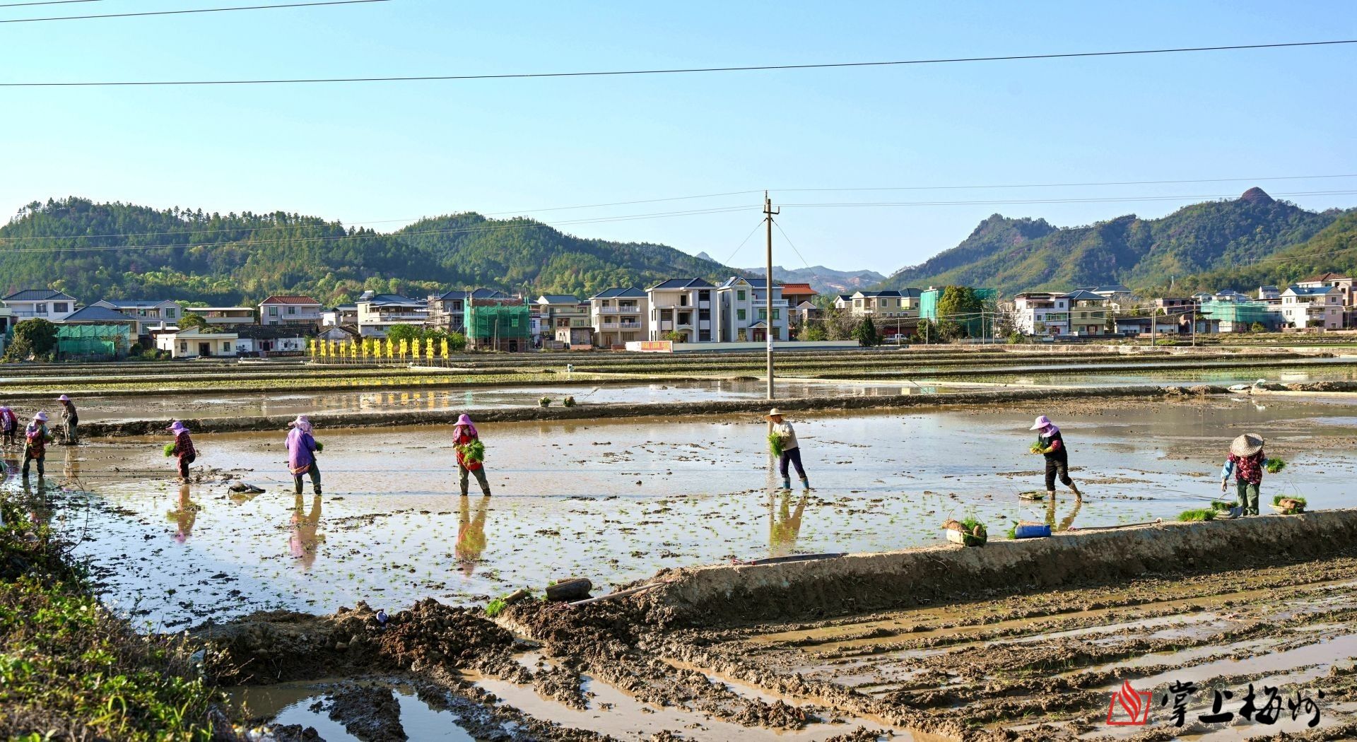 一年之计在于春。在石正镇南台村的稻田里,碧绿的秧苗随着春风泛起涟漪,而在不远处,几名村民正抱着育秧盘在抛秧,有说有笑,好一幅忙碌的田园美景。