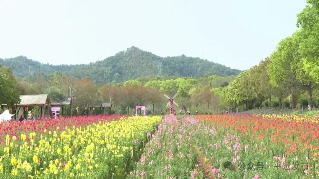 在曼佗山庄,绵延起伏的花田间,五彩斑斓的花朵竞相绽放,宛如一幅生动的春日画卷。前来游玩的游客络绎不绝,他们或驻足观赏美景,或拍照留念。孩子们在父母的陪伴下,尽情嬉戏玩耍,欢笑声此起彼伏。