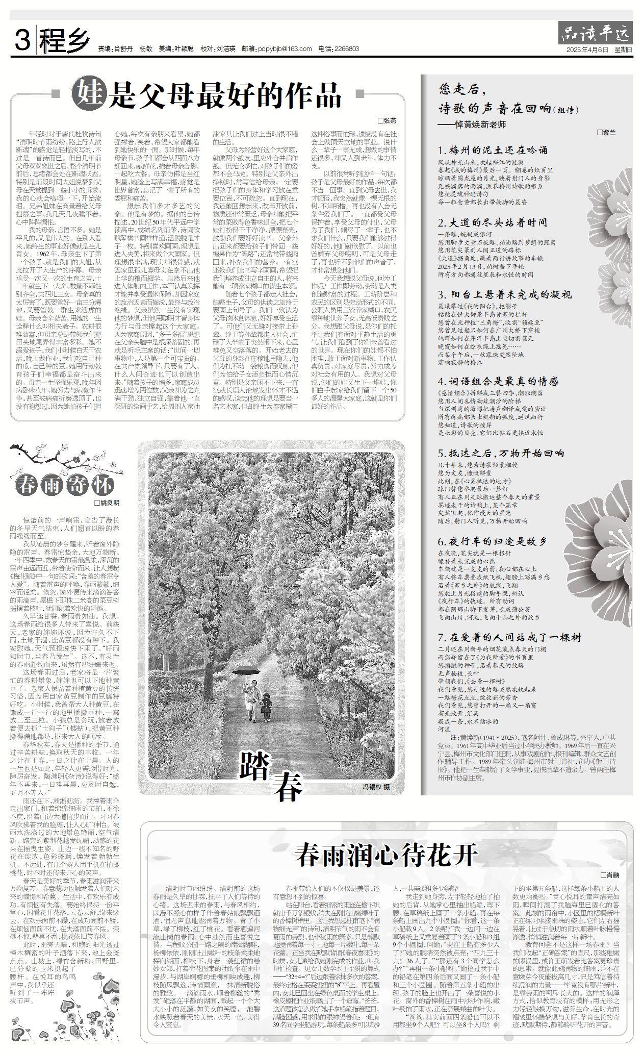 年轻时对于唐代杜牧诗句“清明时节雨纷纷,路上行人欲断魂”的感觉是轻描淡写的,不过是一首诗而已。但自几年前父母双双离世之后,整个清明节前后,思绪都会处在断魂状态。特别是前段时间大姐说梦到父母在天堂提到一些小小的诉求,我的心就会咯噔一下,开始流泪。兄弟姐妹在商量着给父母扫墓之事,我几天几夜睡不着,心中阵阵惆怅。