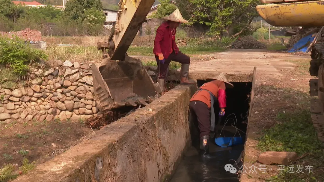 在凉庭村山塘尾,记者看到,工人们正用锄头、簸箕、镰刀等工具,仔细地清理着沟渠周边的枯枝杂草,并捞出沟渠里的淤泥和漂浮物,确保水渠畅通无阻。钩机、运输车、拖拉机等机械设备也加入了清淤工作,它们与工人们协同作业,大大提高了清淤效率。
