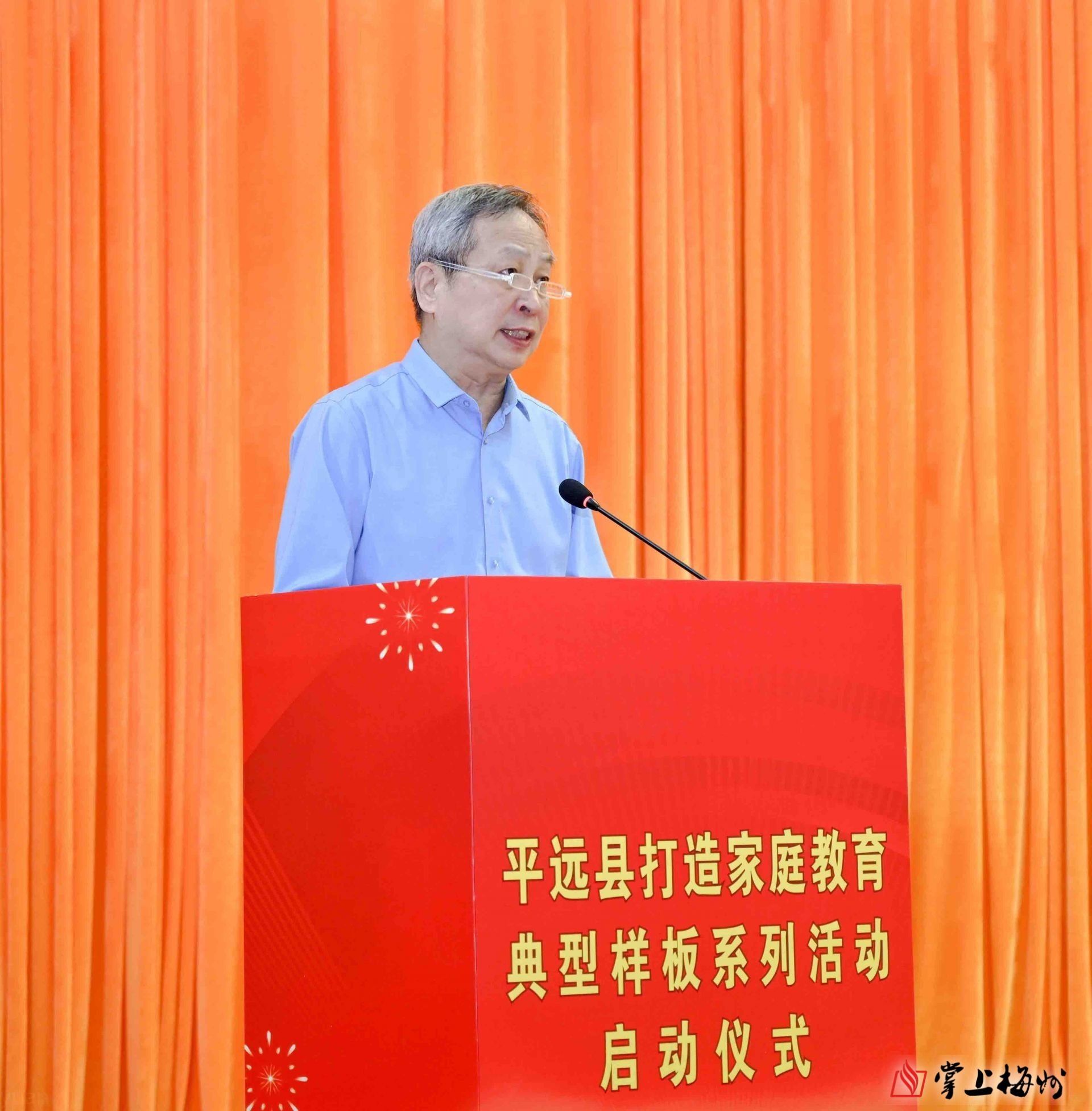 张嘉极在讲话中指出,近年来,省政协高度关注家庭教育工作,先后开展了一系列调研、视察活动,此次平远县开展打造家庭教育典型样板系列活动,不仅与新时代家风家教建设高度契合,更展现出平远在家庭教育领域先行先试、改革创新的坚定决心与责任担当。他强调,要深化认识,凝聚奋进之力,要深入学习领会习近平总书记关于注重家庭家教家风建设的重要论述,把家风家教建设摆在更加重要的位置,更好发挥家教家风在塑造个体品格、推动社会和谐进步的重要作用。要守正创新,打造典型示范。要深入挖掘程旼“以德化人”理念等中华优秀传统文化,用好平远红四军纪念馆、黄沙村等红色资源,将其与新时代家庭教育理念相融合,让群众学有榜样、做有规范、传有路径。平远县要持续探索创新、开拓进取,打造更多具有鲜明地方特色、具备可复制性、推广性的家庭教育典型样板。要服务发展,健全制度机制。要进一步健全制度机制、服务保障等措施,让家教家风建设真正落到实处;要用好此次培训机会,培养一支政治素质强、专业能力高的家教人才队伍;要注重将家教家风建设与社会治理、廉洁文化建设等工作相结合,充分发挥教育、民政、文化、妇联、公检法等部门协同作用,为平远苏区加快振兴、高质量发展注入源源不断的精神力量。