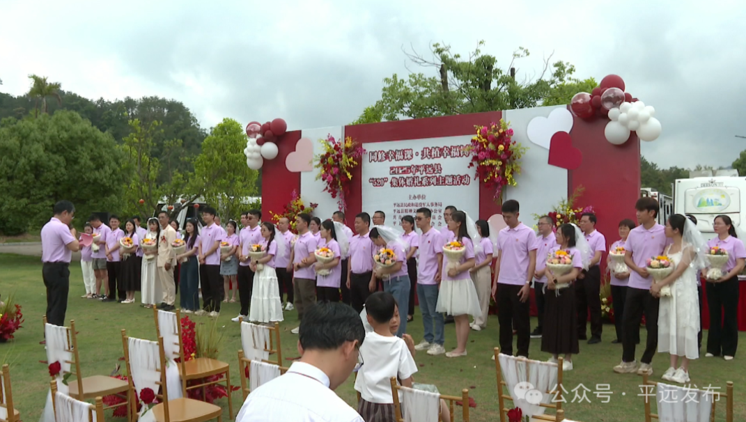 5月18日上午,由平远县民政和退役军人事务局、县文明办、团县委、县妇联联合举办的“同修幸福课·共植幸福树”“520”集体婚礼系列主题活动在五境山庄露营草坪浪漫启幕。副县长蓝常基参加活动。