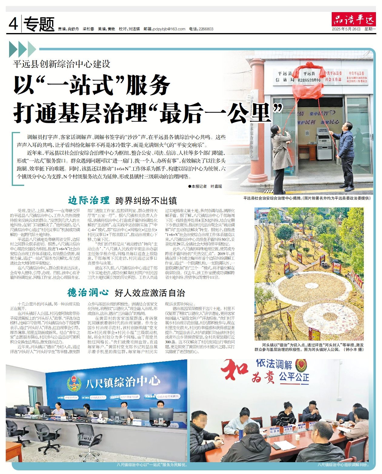 调解员打字声、客家话调解声、调解书签字的“沙沙”声,在平远县各镇综治中心共鸣。这些声声入耳的共鸣,让矛盾纠纷化解率不再是冰冷数字,而是充满烟火气的“平安交响乐”。
