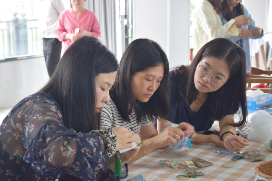 参与者们在专人指导下,亲手缝制内含艾草、菖蒲的驱蚊避瘟香囊,并编织五色丝绳手链(红、黄、绿、白、黑)。这两项传统手作活动,既传承了端午习俗,又寄托了健康平安的美好祈愿,深受欢迎。