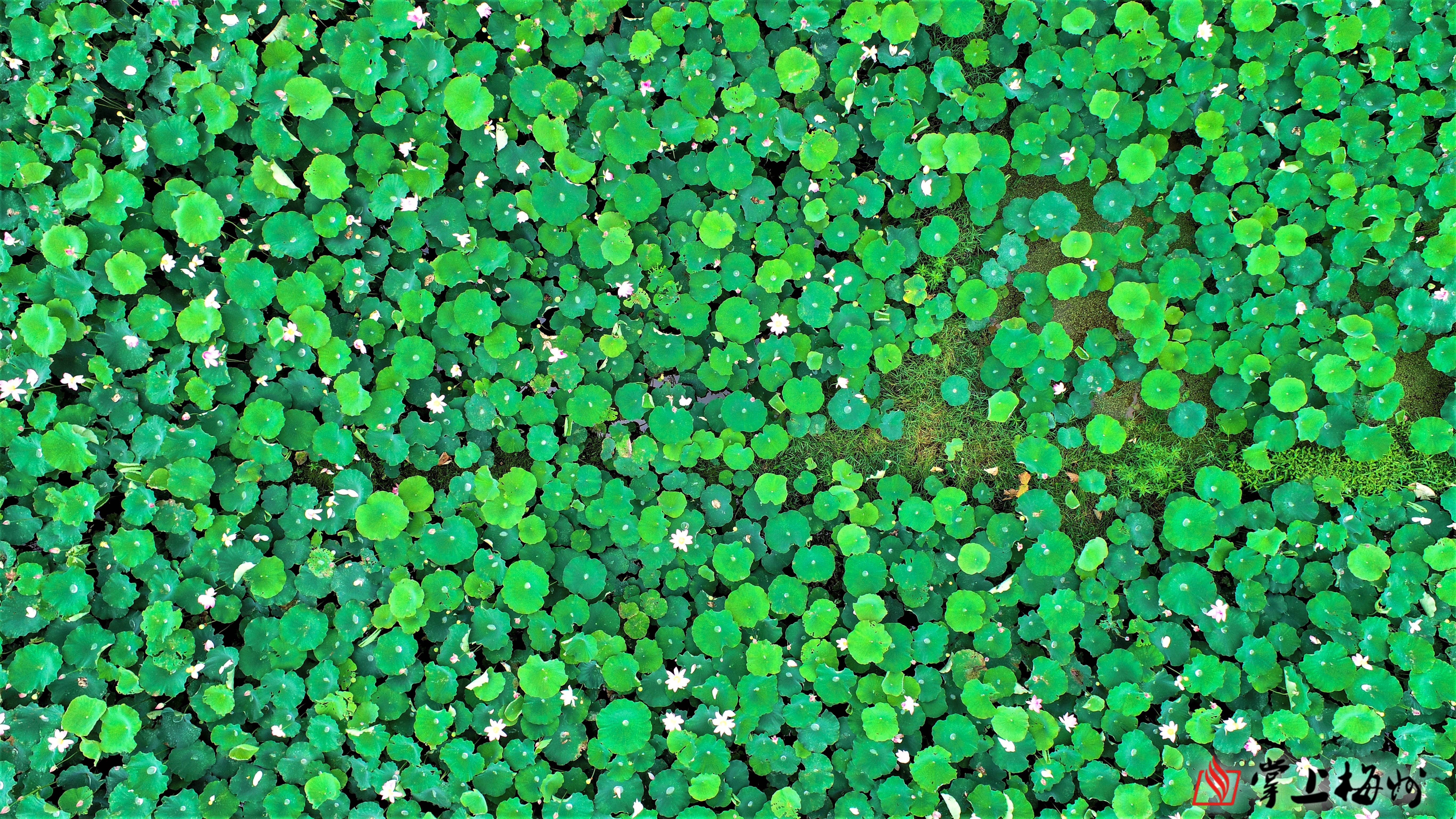一片片荷田宛如碧色锦缎铺展于山水之间。