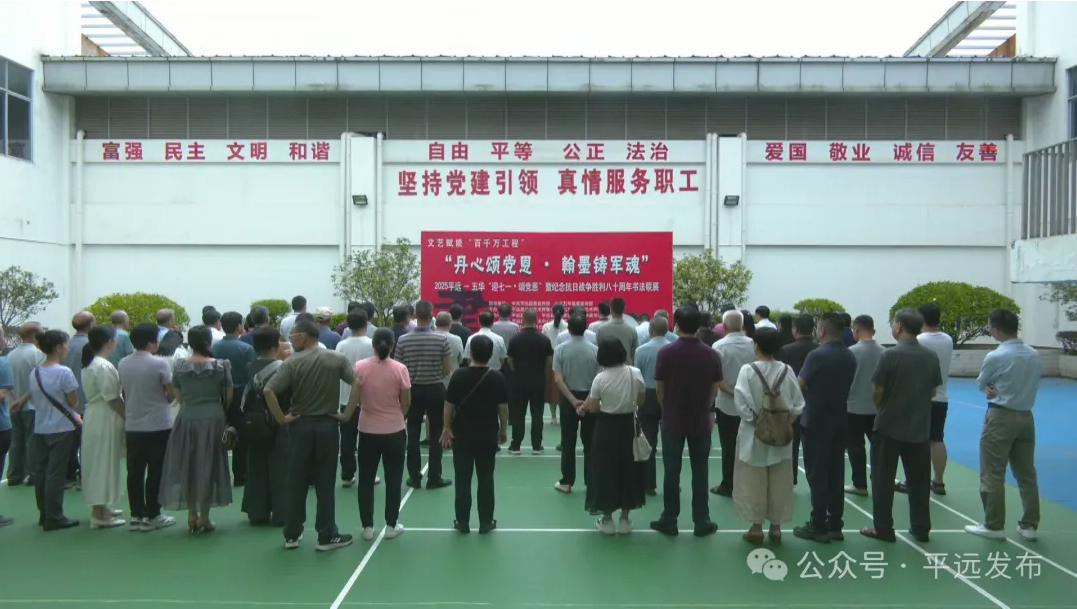 6月16日上午,“丹心颂党恩・翰墨铸军魂”平远-五华“迎七一·颂党恩”暨纪念抗日战争胜利八十周年书法联展开幕式在平远县文联举行。县委常委、宣传部部长曾小芬,原市水务局局长肖昭穗,原市卫生局局长张奕明等领导和嘉宾参加活动。