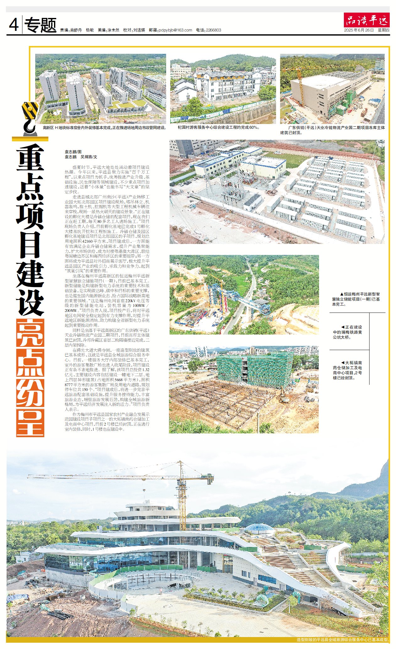 盛夏时节,平远大地处处涌动着项目建设热潮。今年以来,平远县聚力实施“百千万工程”,以重点项目为抓手,统筹推进产业升级、基础设施、民生保障等领域建设,不少重点项目加速建设,迈着“小体量”也能书写“大文章”的坚定步伐。