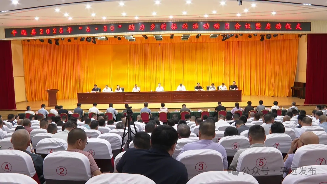 6月30日上午,平远县举行2025年“6·30”助力乡村振兴活动动员会议暨启动仪式,广泛动员社会各界全力支持巩固拓展脱贫攻坚成果,参与实施“百千万工程”、绿美平远生态建设等重点工作,为推进全县乡村全面振兴、城乡区域协调发展作出积极贡献。
