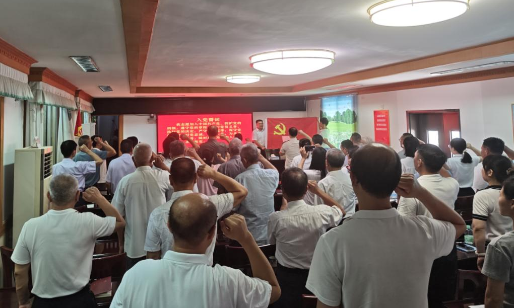 重温入党誓词不忘初心强使命。在党支部书记的带领下,全体党员面对鲜红的党旗,高举右拳庄严宣誓,党员们以铿锵有力的宣誓声音,表达了“不忘初心、牢记使命”的信念与决心,在铿锵誓言中,汲取前行力量。