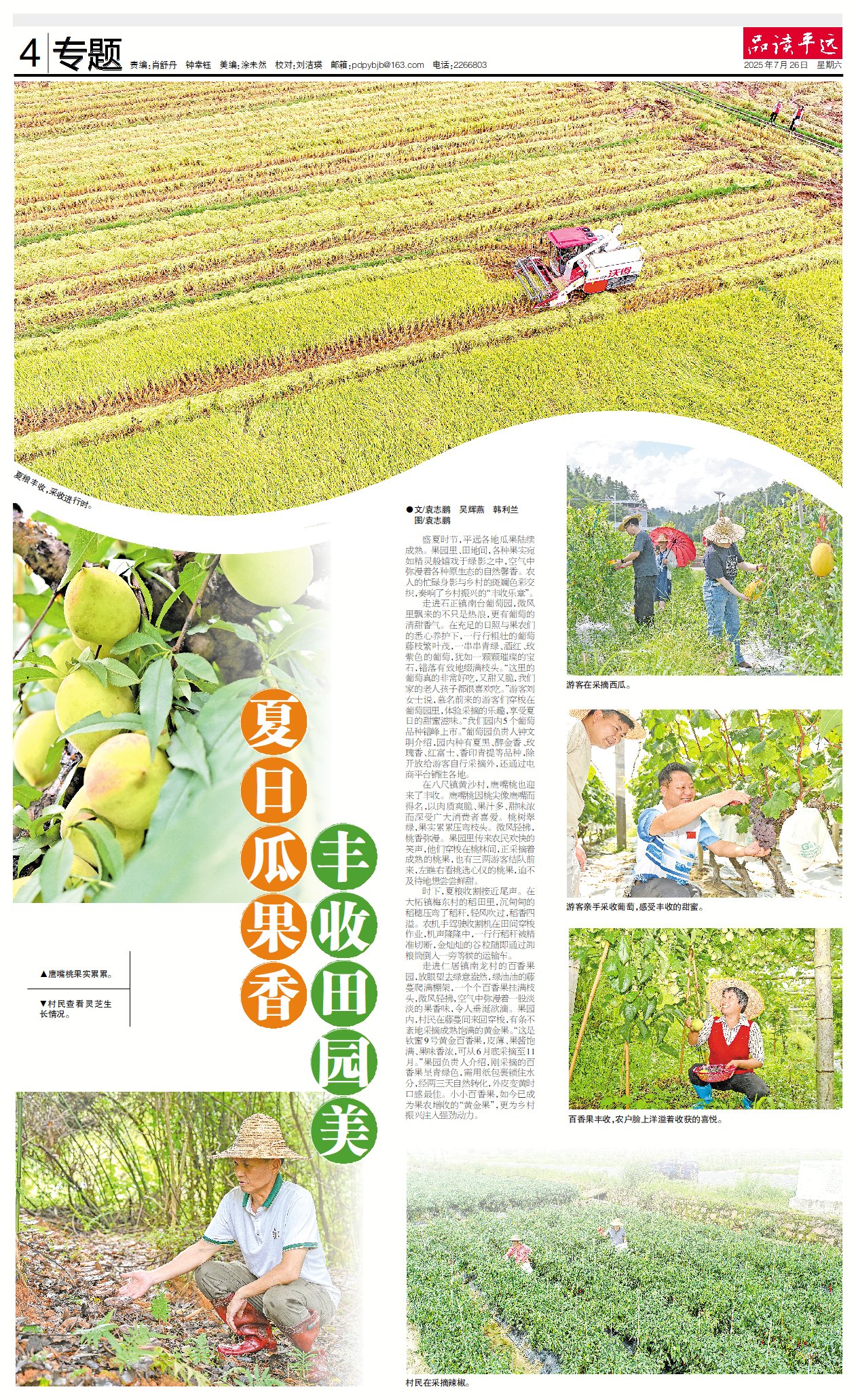 盛夏时节,平远各地瓜果陆续成熟。果园里、田地间,各种果实宛如精灵般嬉戏于绿影之中,空气中弥漫着各种原生态的自然馨香。农人的忙碌身影与乡村的斑斓色彩交织,奏响了乡村振兴的“丰收乐章”。