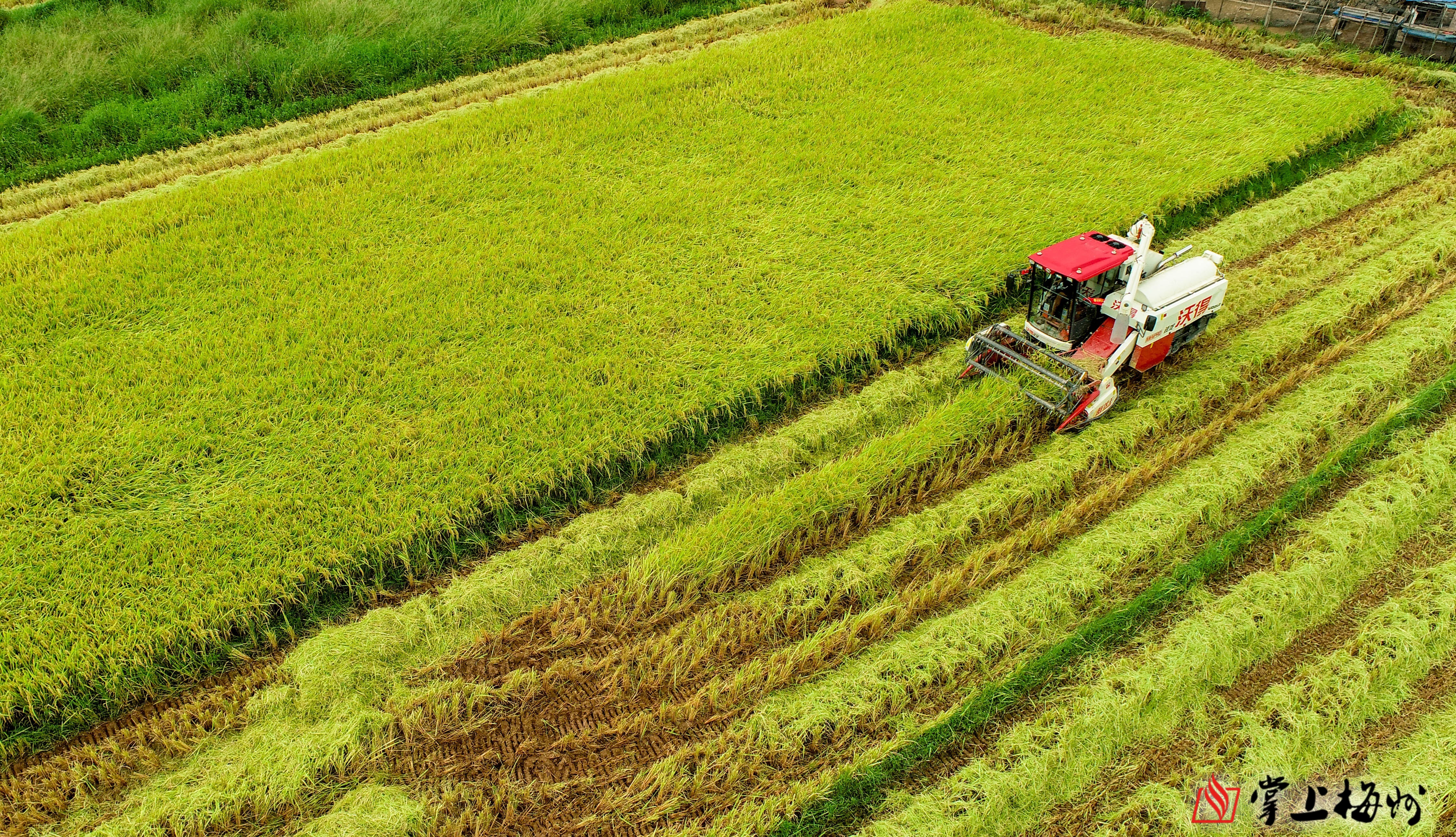 时下,夏粮收割接近尾声。在大柘镇梅东村的稻田里,沉甸甸的稻穗压弯了稻秆,轻风吹过,稻香四溢。农机手驾驶收割机在田间穿梭作业,机声隆隆中,一行行稻秆被精准切断,金灿灿的谷粒随即通过卸粮筒倒入一旁等候的运输车。