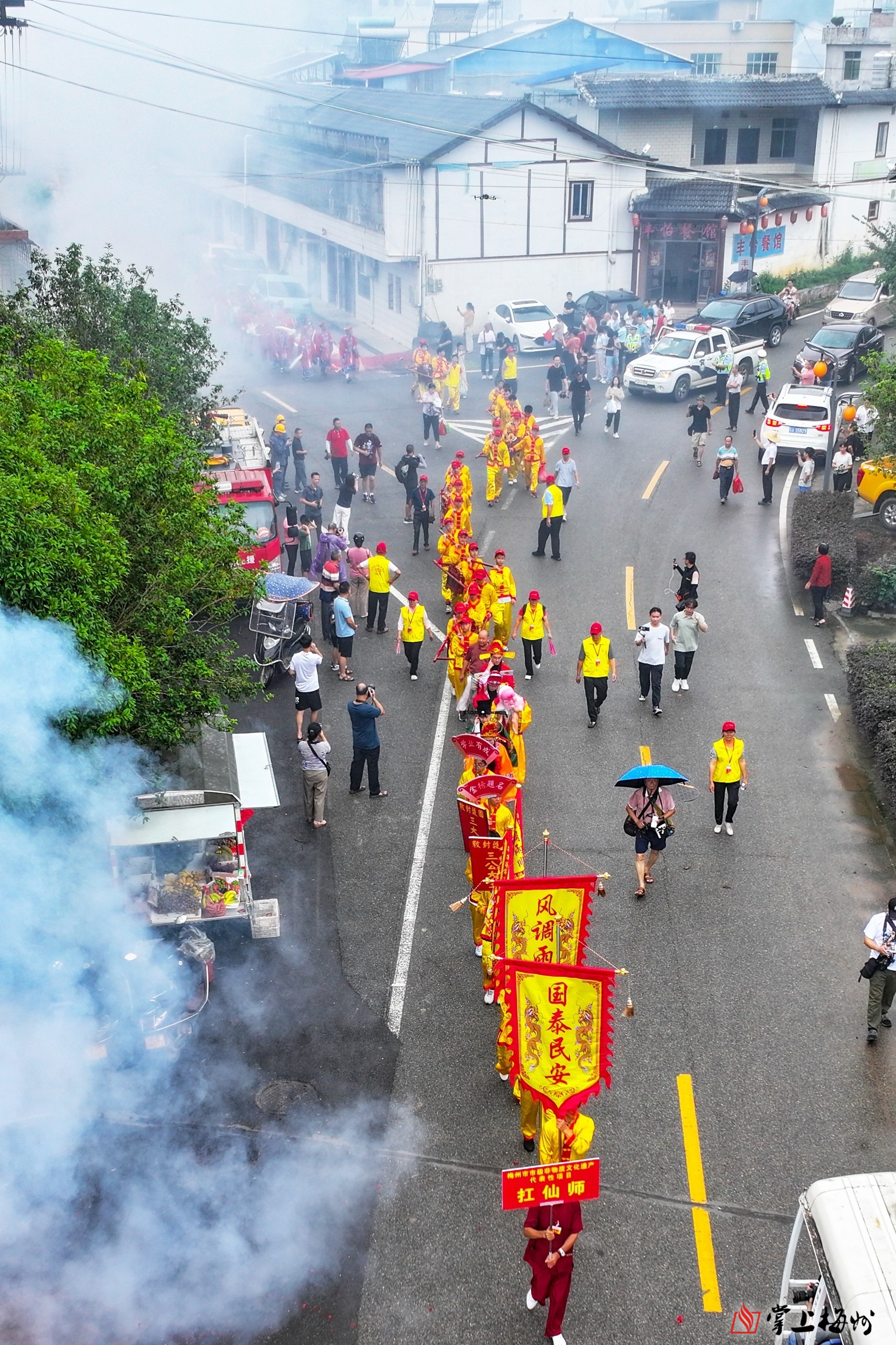 清晨7时30分,声势浩大的市级非遗项目“扛仙师”巡游率先登场。近300人的队伍自仙师宫出发,沿杞溪广场、乐粤公祠、差干学校、善吉大道行进,最终抵达政府广场。队伍所到之处,鞭炮齐鸣。在乐粤公祠和政府广场的定点展演中,刚劲的黄氏头部拳、灵动的传统舞狮赢得沿途观众阵阵喝彩,平远上岃山歌的悠扬旋律更为巡游增添动人韵味。据悉,“扛仙师”民俗可追溯至北宋政和二年(1112年),盛行于粤赣闽边区,承载着民众对“风调雨顺、国泰民安”的美好祈愿。