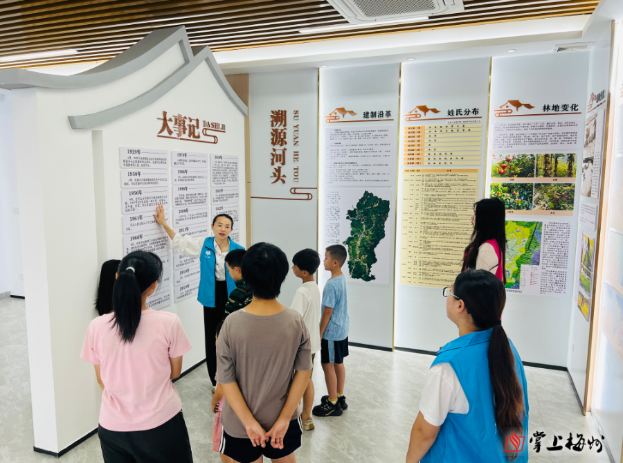 活动伊始,河头镇社工带领孩子们到河头镇文体中心“河头印象”红色教育基地,和大家讲解河头镇概貌和风土人情,包括建制沿革、姓氏分布、林地变化、耕地变化、道路修建等,让大家对自己家乡有更深刻的了解。社工还着重回顾革命先辈的奋斗历程,讲述杨广存、李巴林、张雪芬等先烈们的事迹,感悟红色精神,汲取奋进力量。“我们要像英雄一样勇敢,好好学习,报效祖国!”一名少先队员在分享环节坚定地说道。