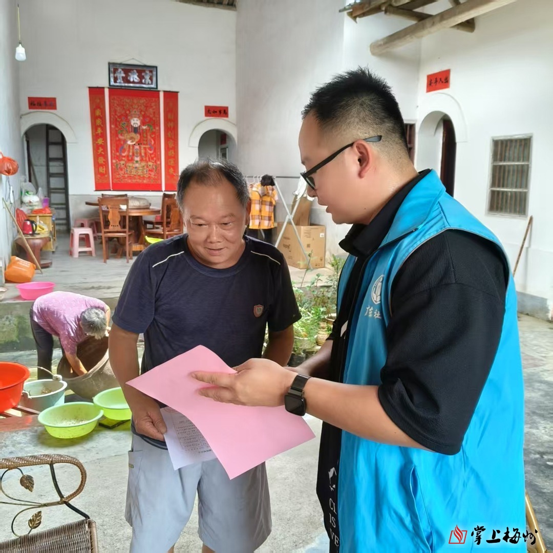 八尺镇社工来到八尺社区、八尺村等地开展入户探访,为困难群众送上防蚊药包。(平远县八尺镇社工站供图)