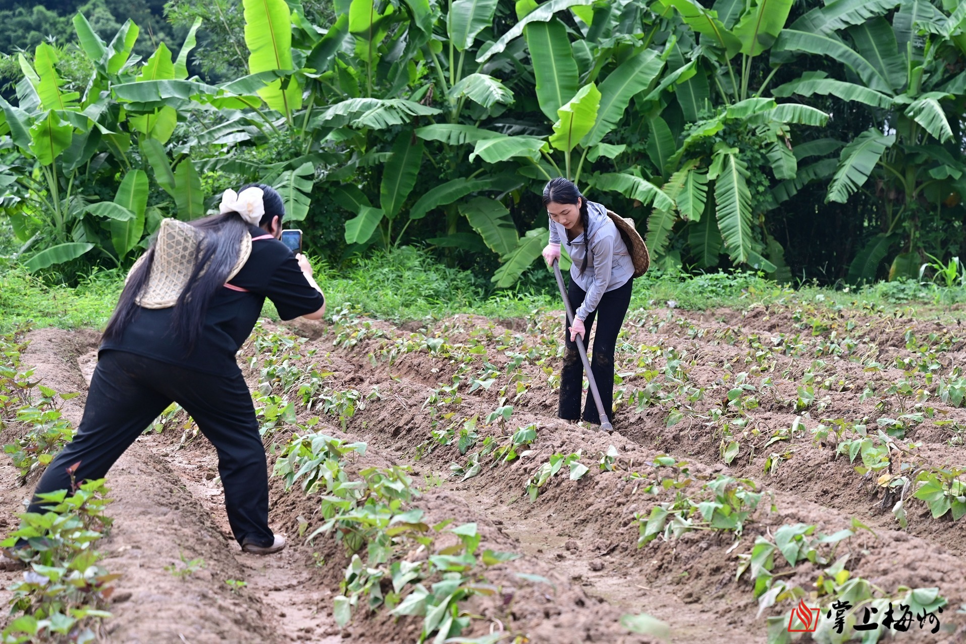 9月初的清晨,大柘镇的田地里,刘玉环已经卷起裤脚、拿起锄头,和外婆一起忙活起来,同伴则用手机记录下她劳作的画面。刘玉环笑着说:“我们不是摆拍,是真干。干着干着,好镜头自然就有了。”
