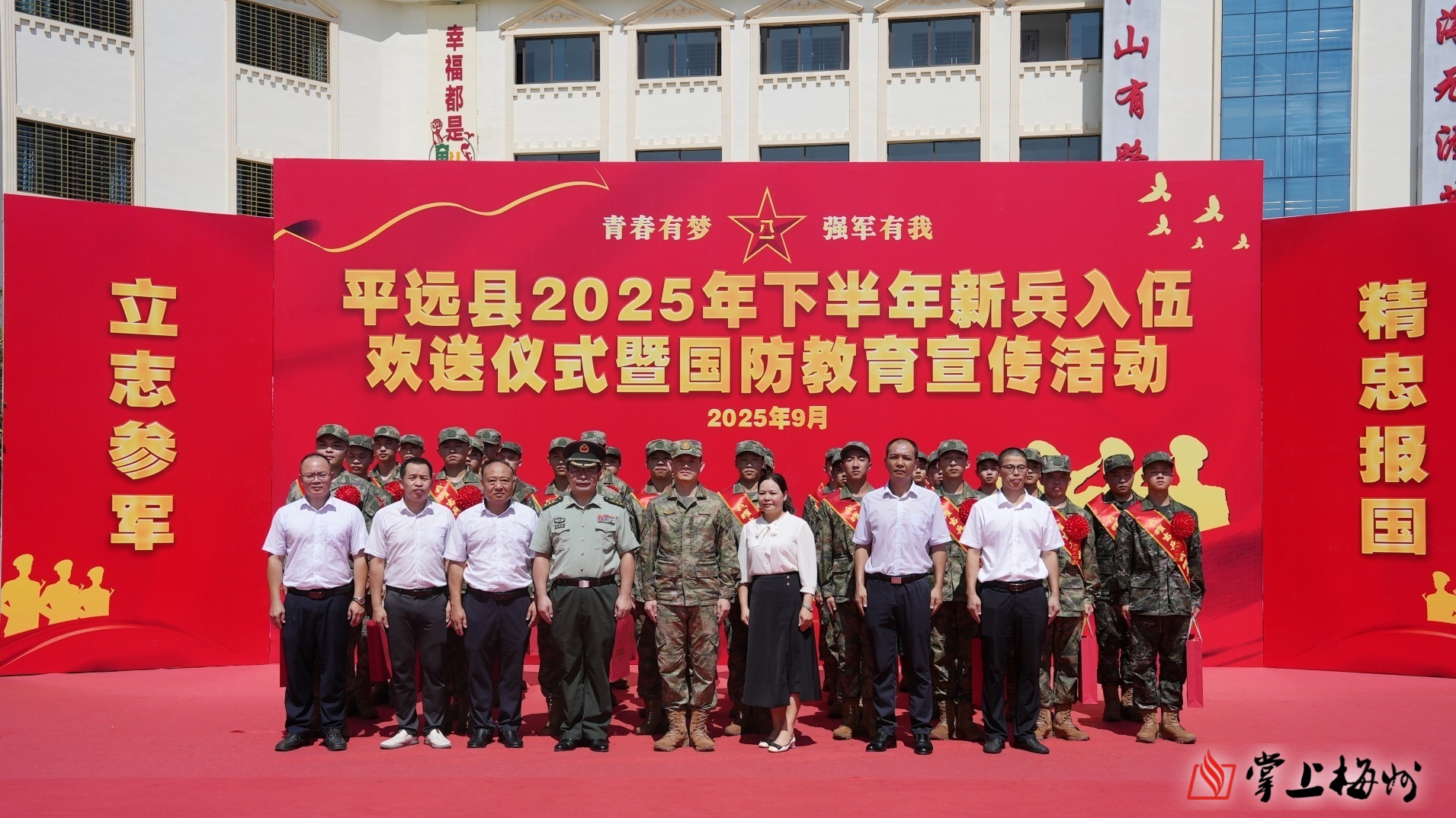 掌上梅州讯 自觉接受祖国挑选,奔赴军营锻炼成才。醒狮起舞,锣鼓喧天,吹响启程号角;军民情深,夹道欢送,同普军民华章……9月15日,广东省平远县隆重举行2025秋季新兵入伍欢送仪式,胸戴红花、肩披绶带的新兵战士精神抖擞,带着家乡人民的殷切嘱托,即将奔赴火热军营,开启强军报国新征程。