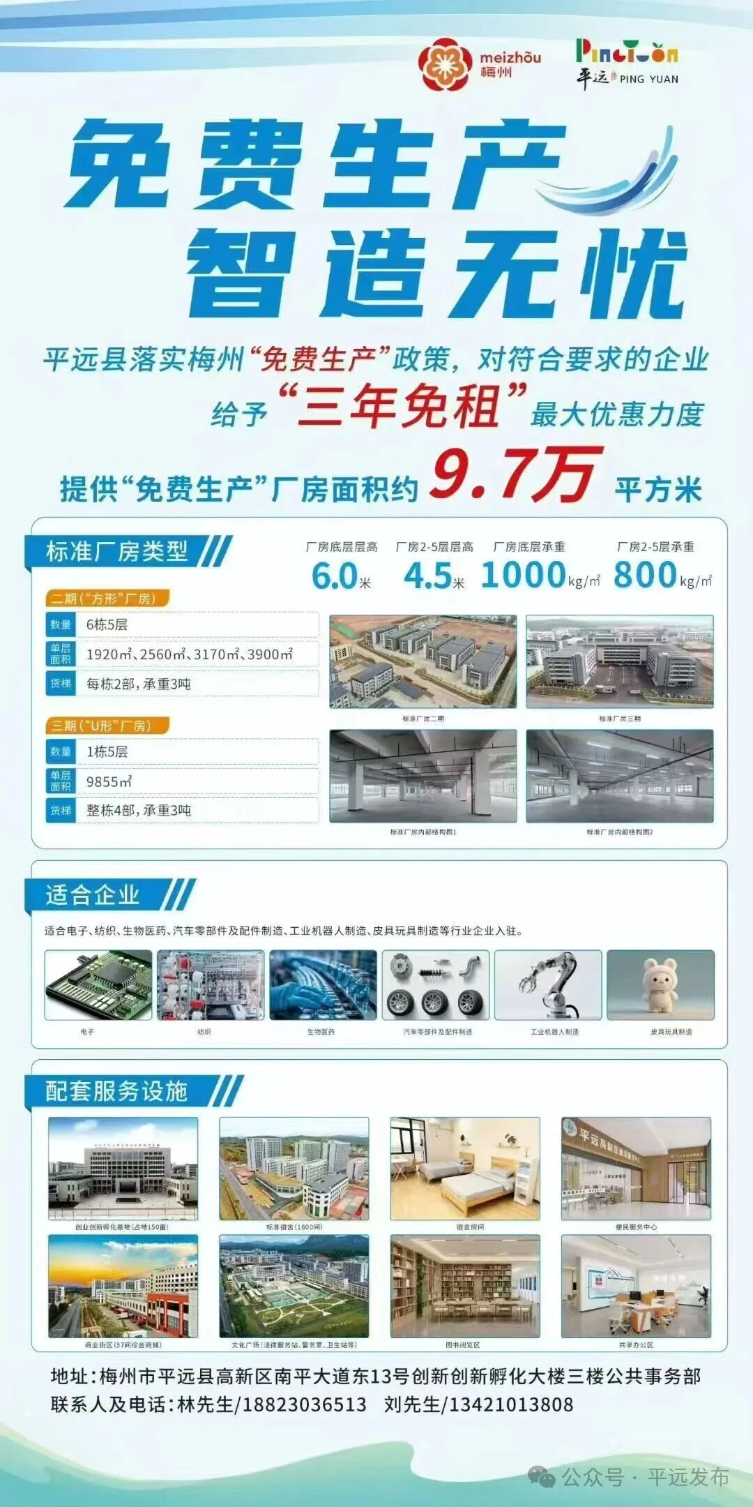 平远县落实梅州“免费生产”政策,对符合要求的企业给予“三年免租”最大优惠力度。
