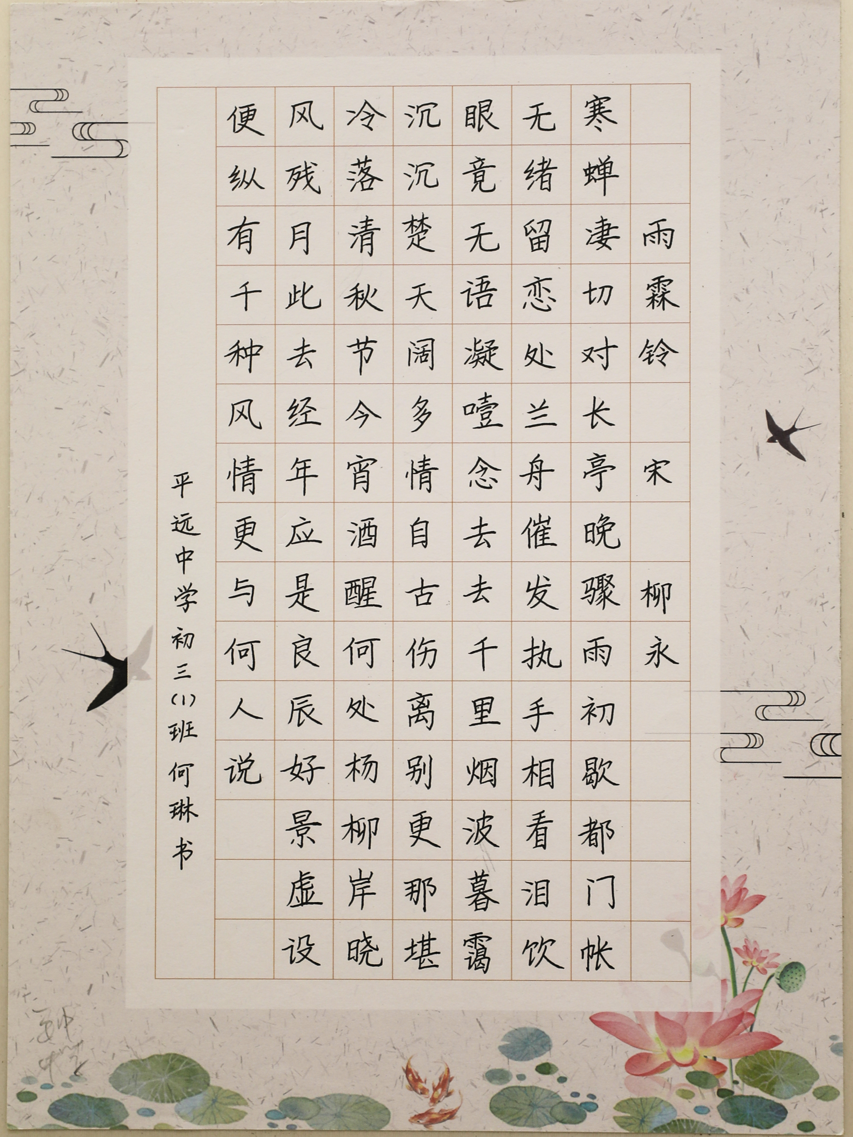 楷书 《雨霖铃》 何琳(平远县平远中学)