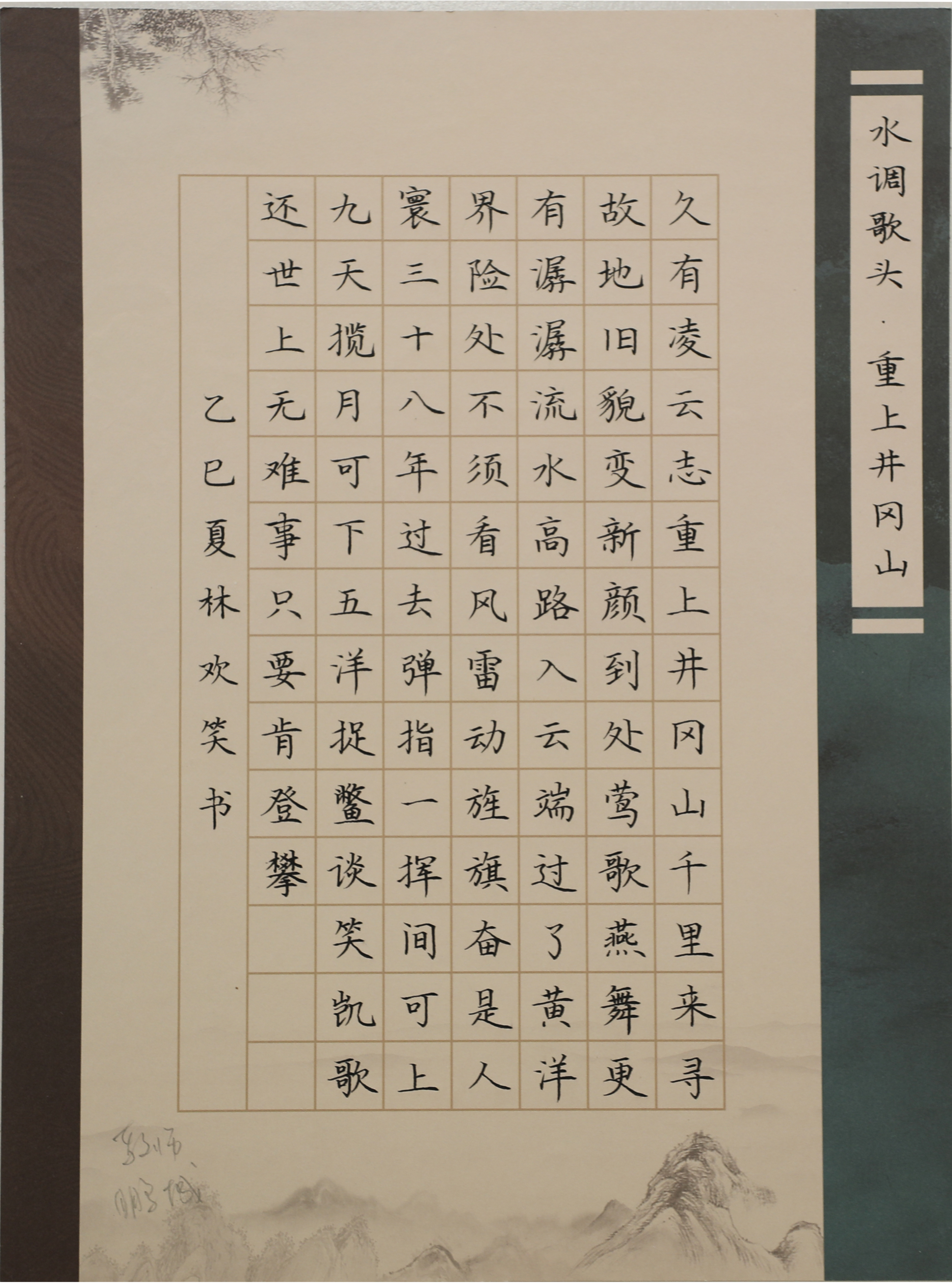 楷书 《水调歌头·重上井冈山》 林欢笑(平远县鹏城幼儿园)