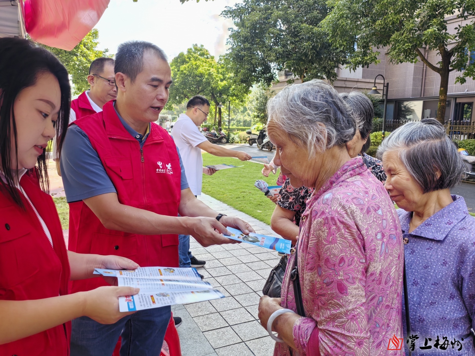 中国电信平远分公司工作人员走进碧桂园一期,为小区居民讲解网络安全知识。(吴辉燕 摄)