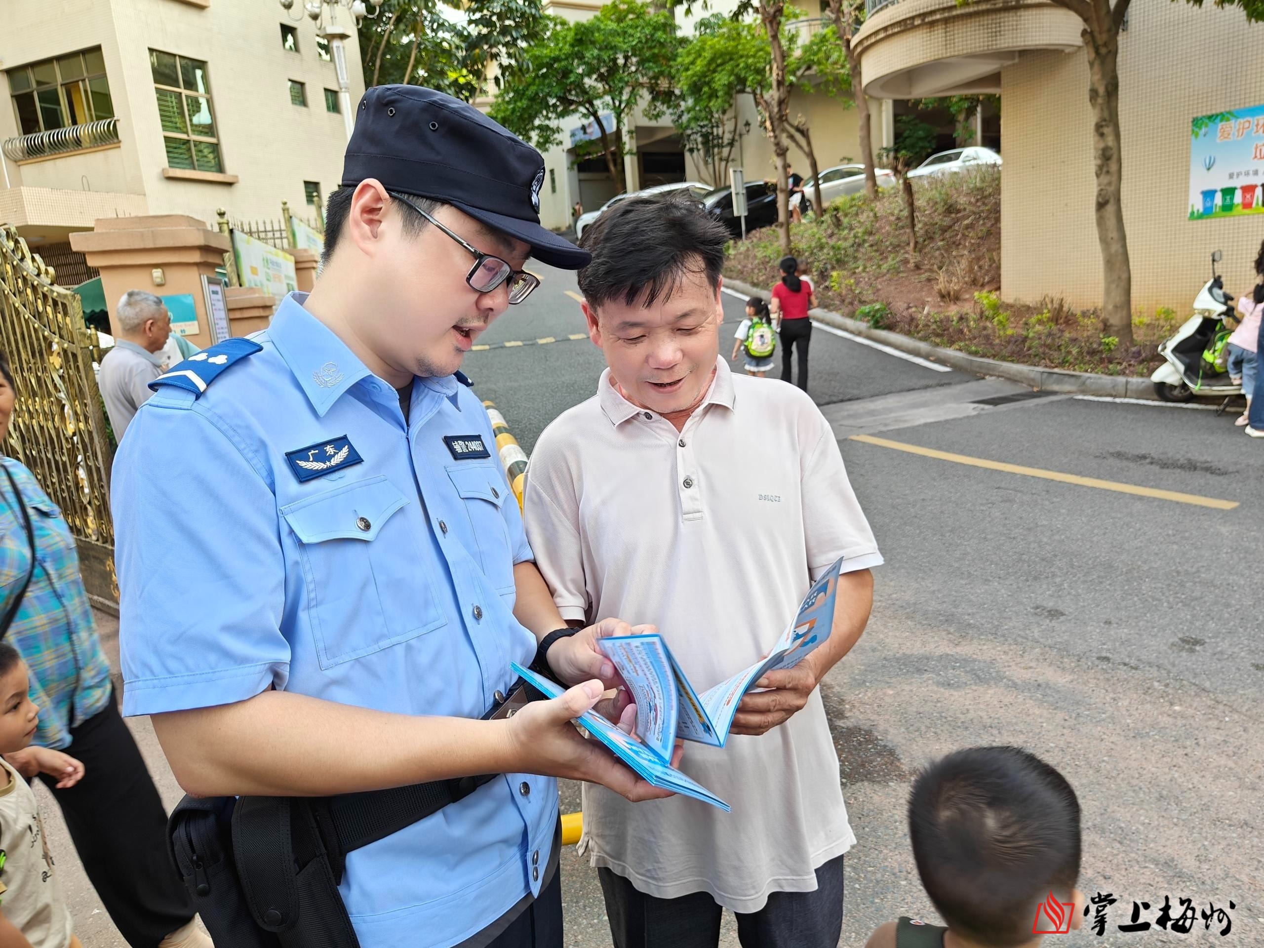 平远网安大队民警为群众发放网络安全宣传手册。(受访者供图)