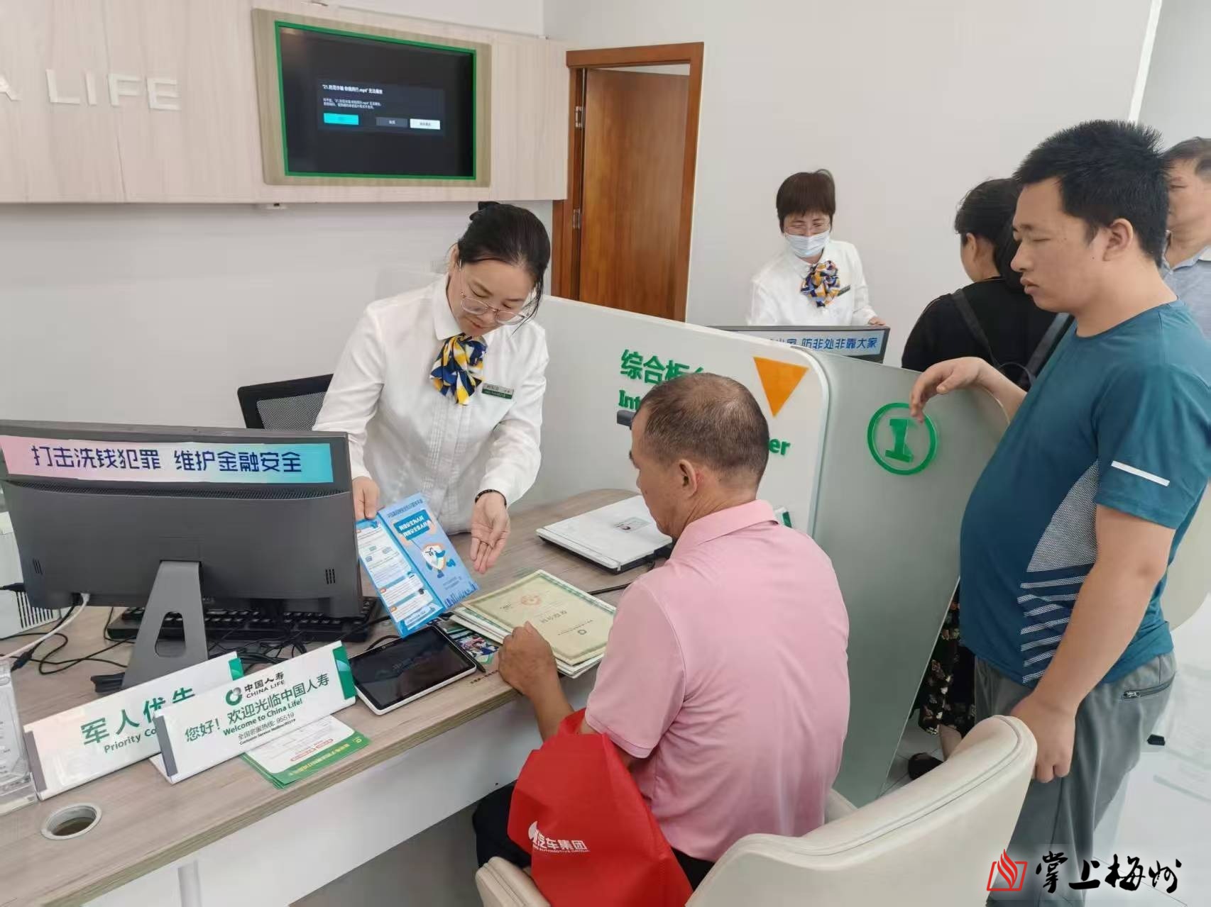 银行系统工作人员为前来办理业务人员宣传网络安全知识。(受访者供图)