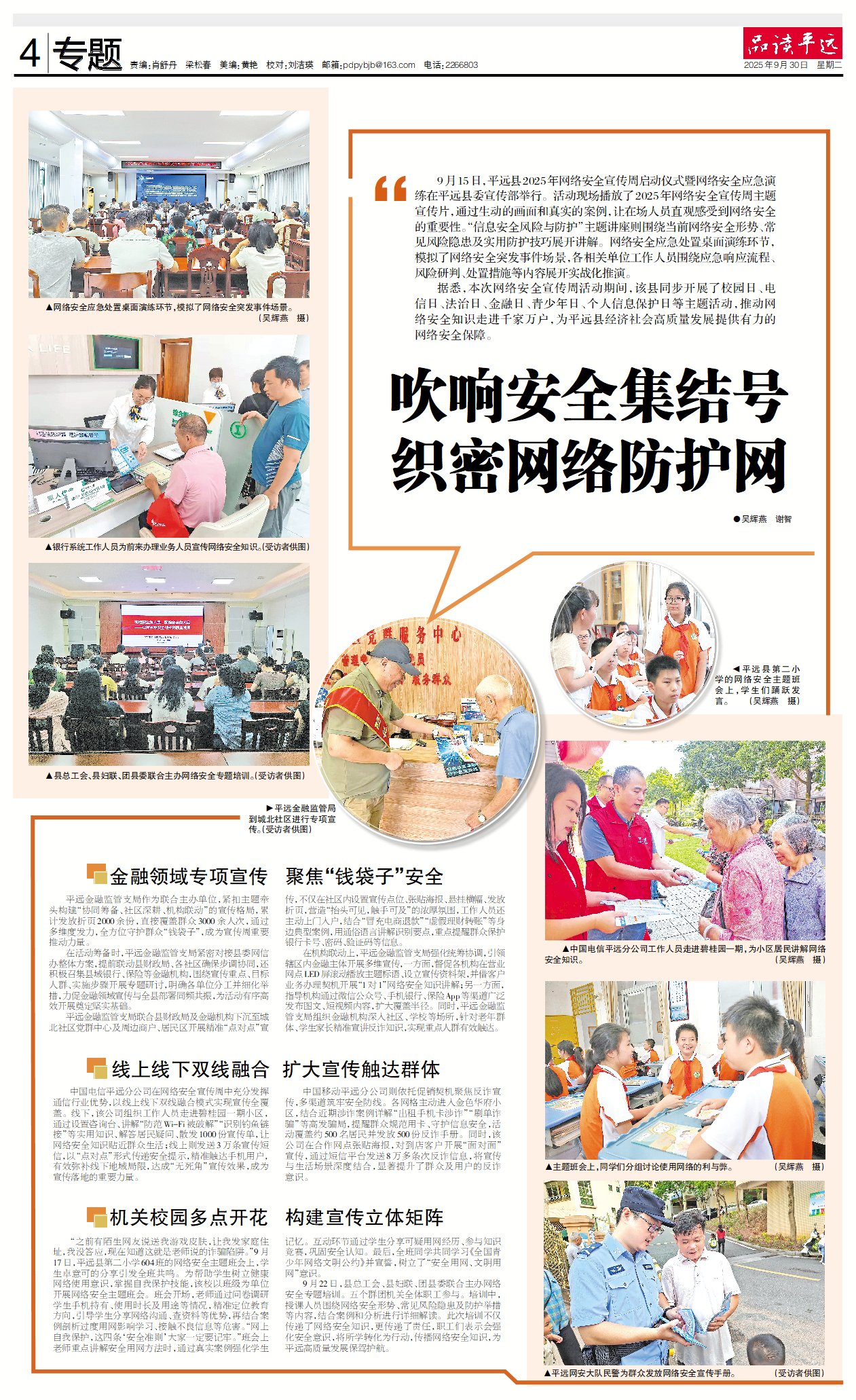 据悉,本次网络安全宣传周活动期间,该县同步开展了校园日、电信日、法治日、金融日、青少年日、个人信息保护日等主题活动,推动网络安全知识走进千家万户,为平远县经济社会高质量发展提供有力的网络安全保障。