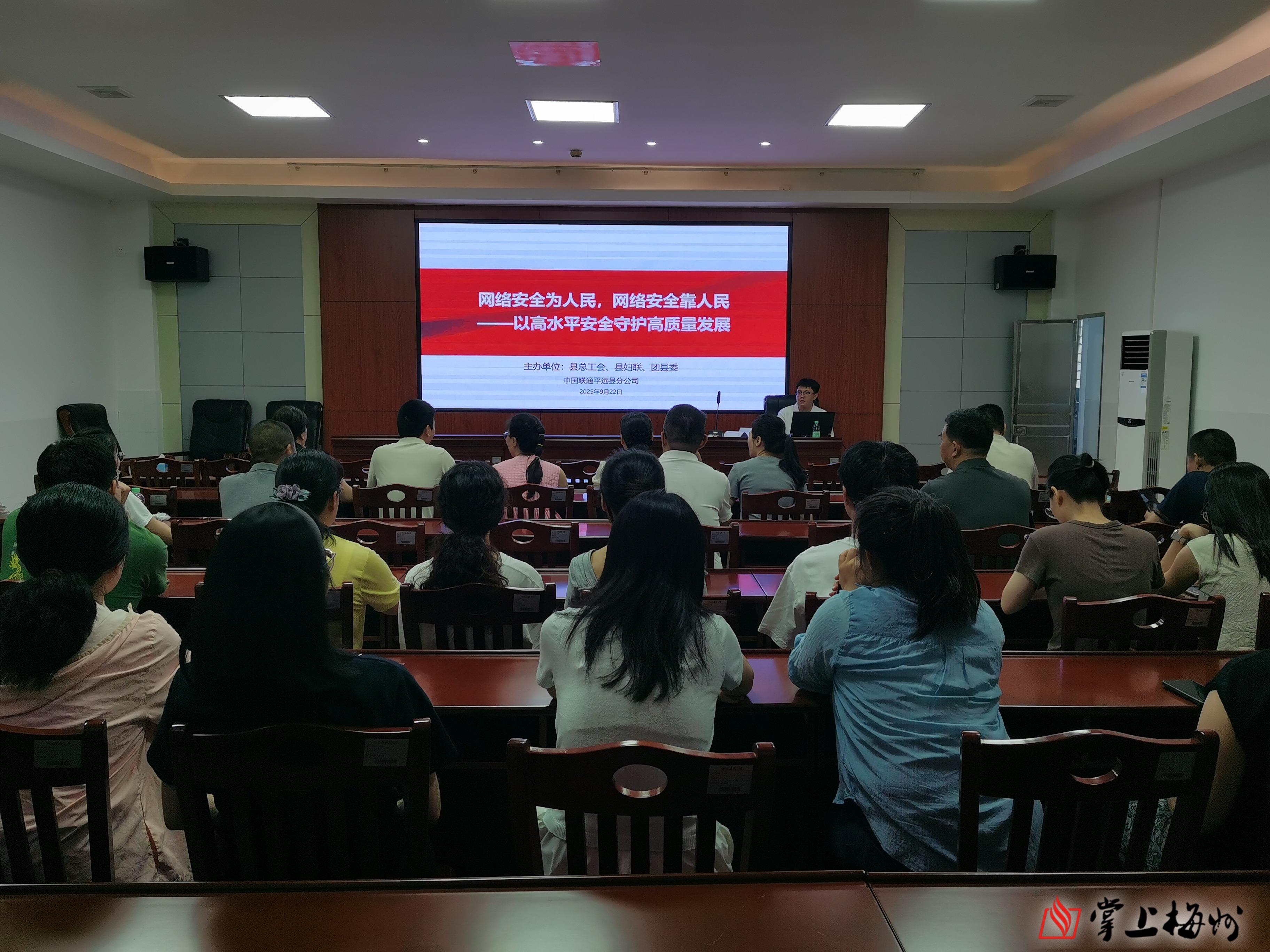 9月22日,县总工会、县妇联、团县委联合主办网络安全专题培训。五个群团机关全体职工参与。培训中,授课人员围绕网络安全形势、常见风险隐患及防护举措等内容,结合案例和分析进行详细解读。此次培训不仅传递了网络安全知识,更传递了责任,职工们表示会强化安全意识,将所学转化为行动,传播网络安全知识,为平远高质量发展保驾护航。