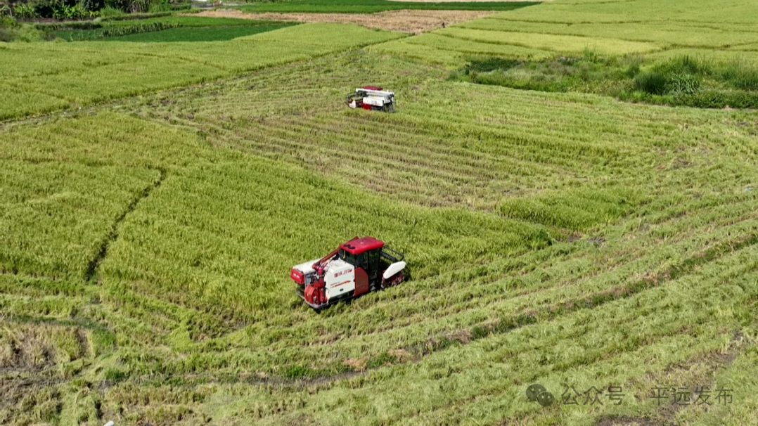 近期以来,平远县5500亩“社村”合作制种水稻迎来收割季,制种加工企业抢抓晴好天气进行收割、装运,确保颗粒归仓。