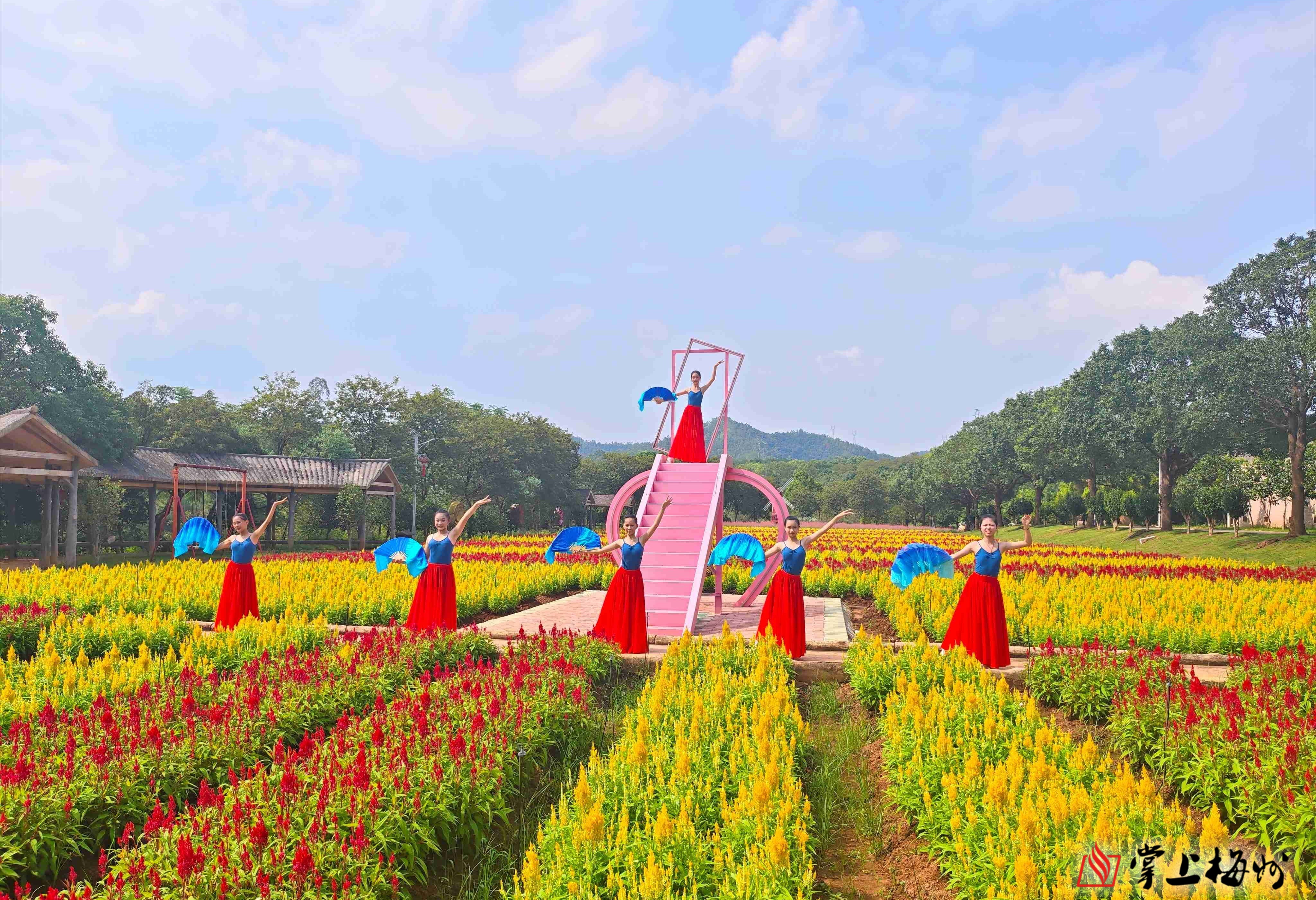 在曼佗山庄花海,舞者们与花共舞。