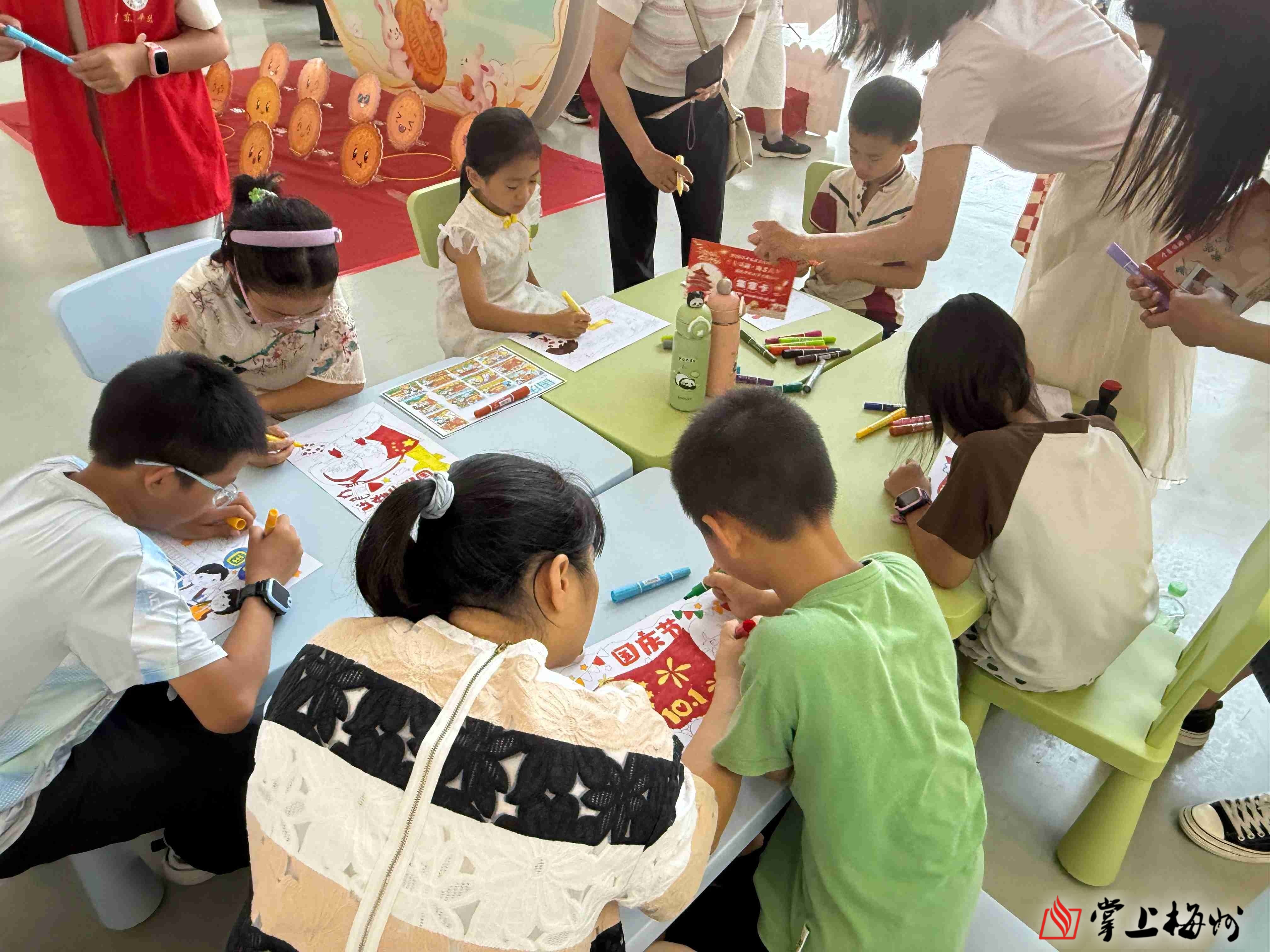 小朋友正在参与“庆国庆迎中秋”涂鸦活动。